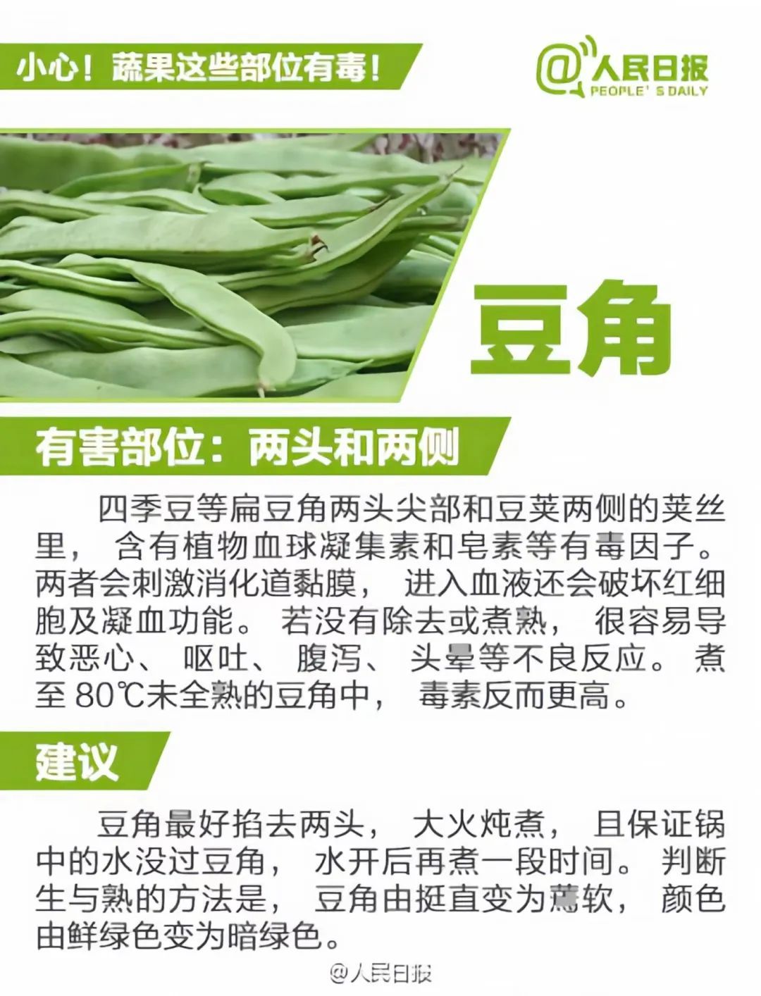 生豆角或未煮熟的豆角含有有毒成分,如皂素和植物血凝素,可能引发恶心、呕吐、腹痛、腹泻等中毒症状。