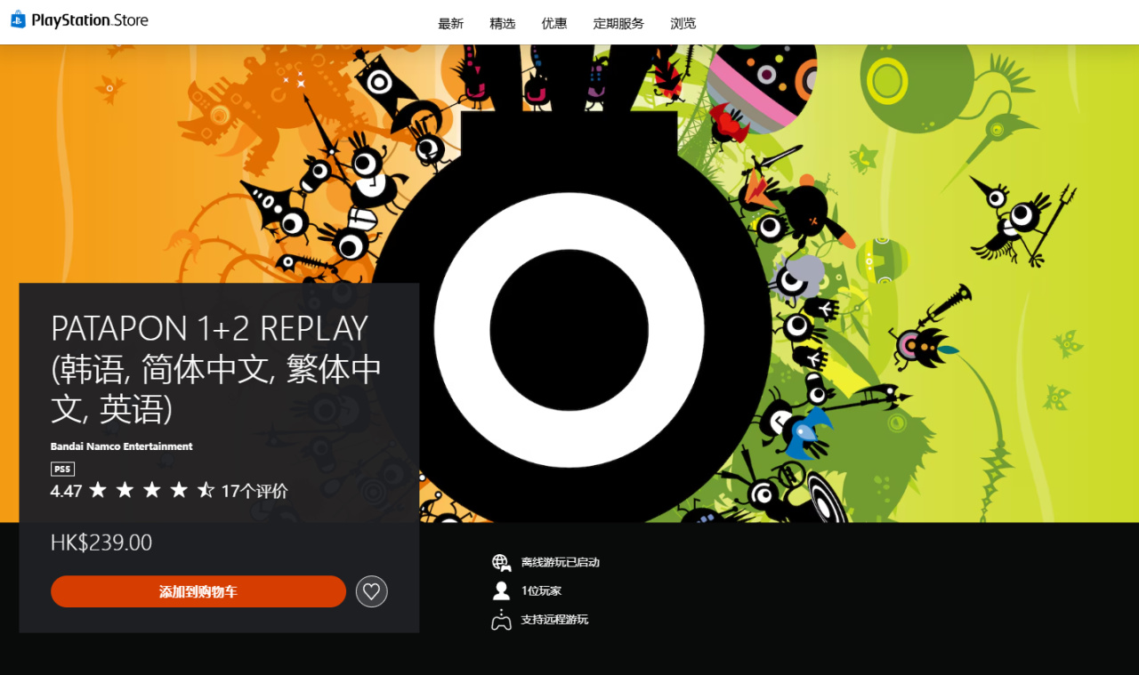 PlayStation版:239港幣(現匯率約合 218 元人民幣)