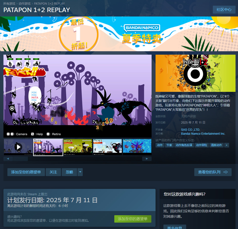 今天是7.11,各位神明大人期待的《PATAPON 1+2 REPLAY》正式發售,Switch和PS版在昨天已經發售,以下是相關平臺的售價,關於遊戲介紹敬請回顧本作者遊戲快訊合集中的-《啪嗒啪嗒啪嗒砰!-兒時魔性音遊》文章《啪嗒砰1+2重製版》遊戲簡介