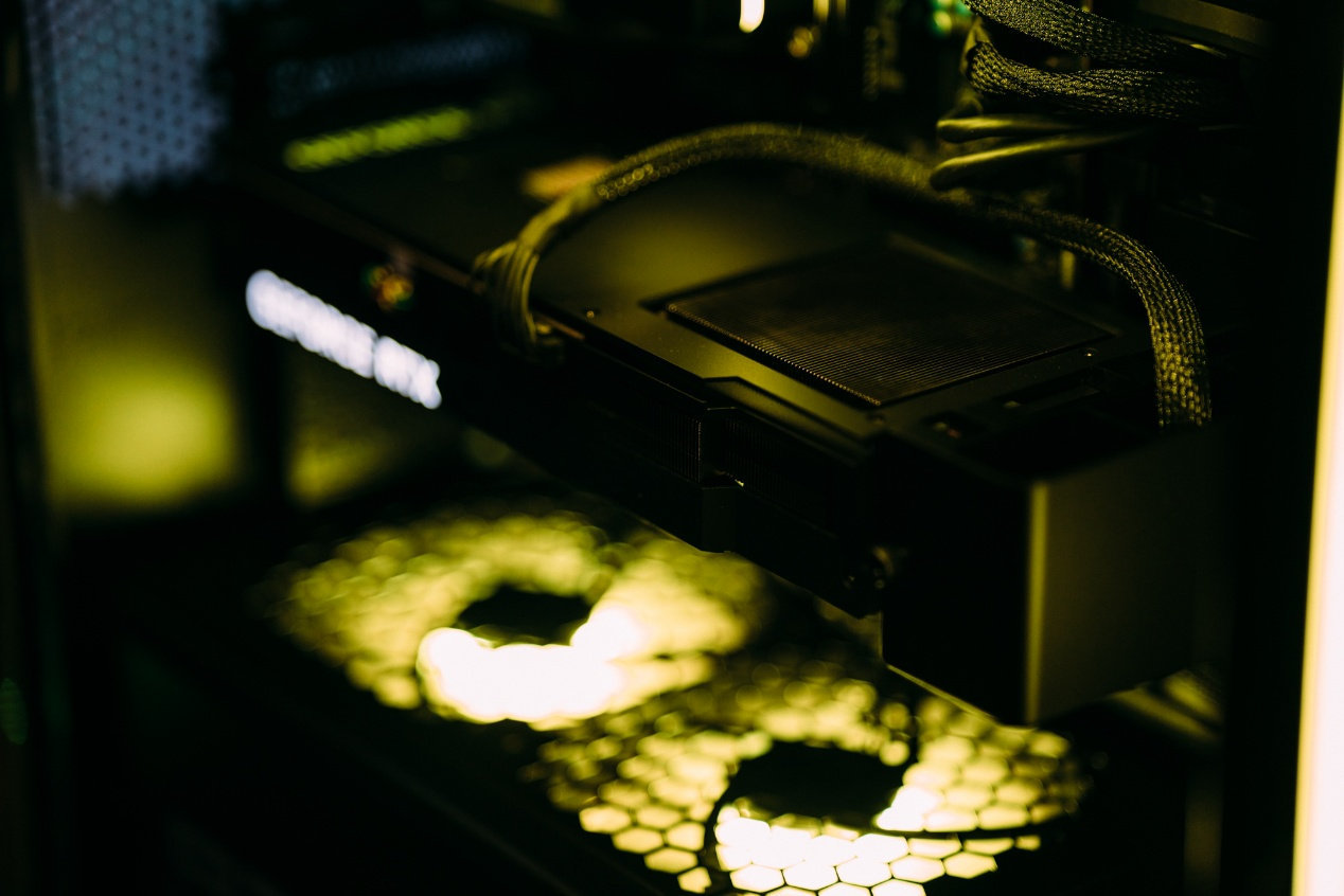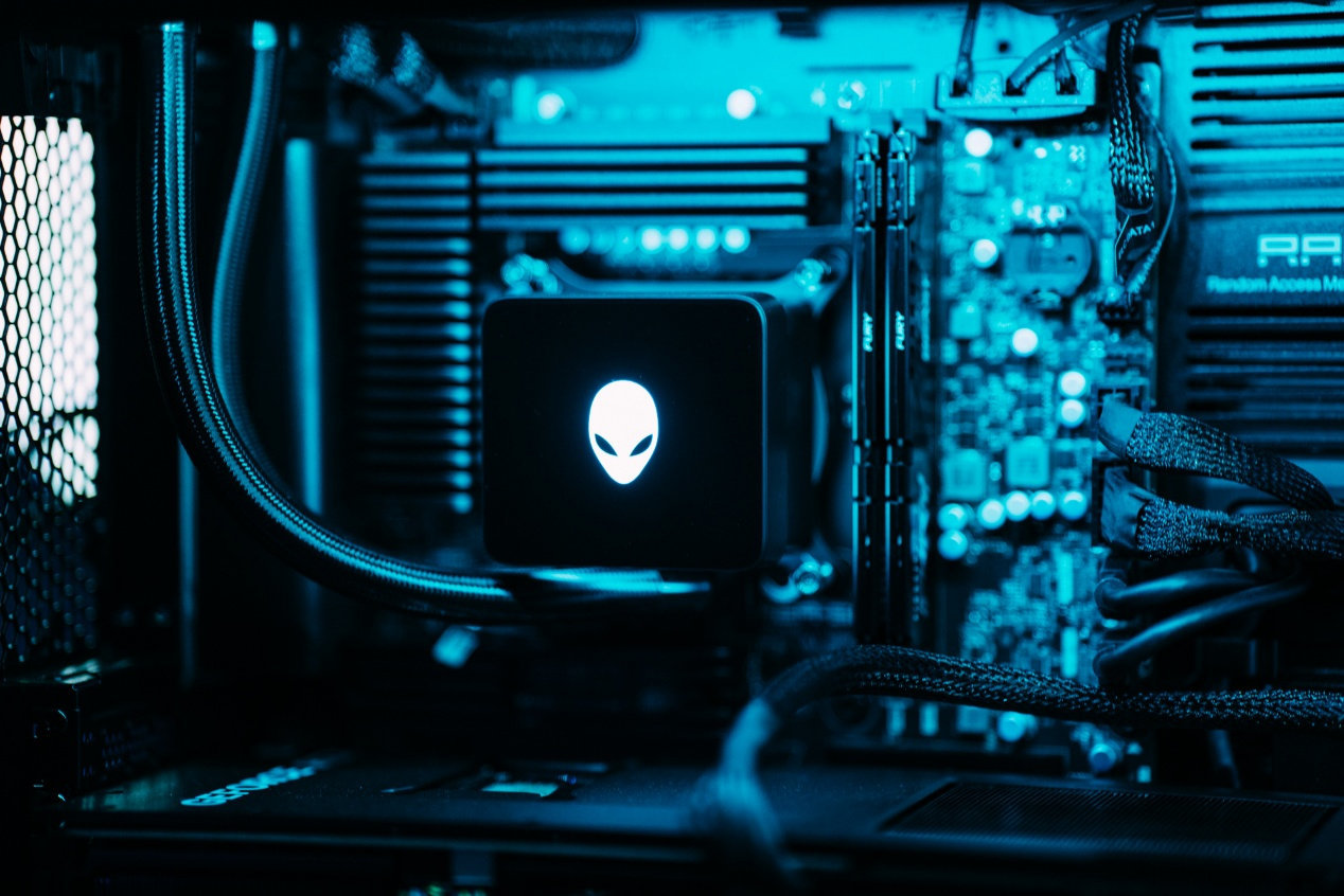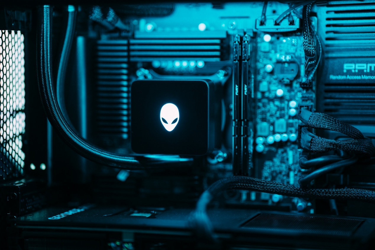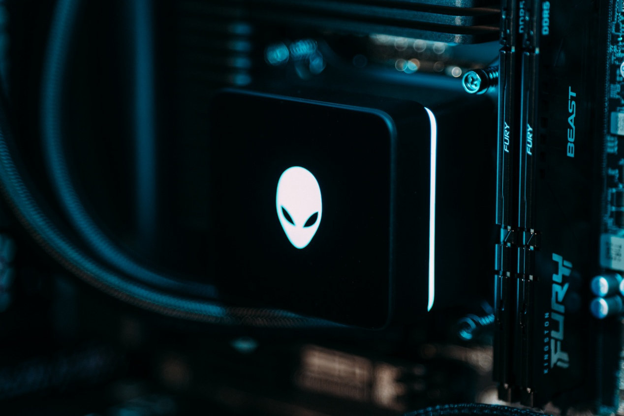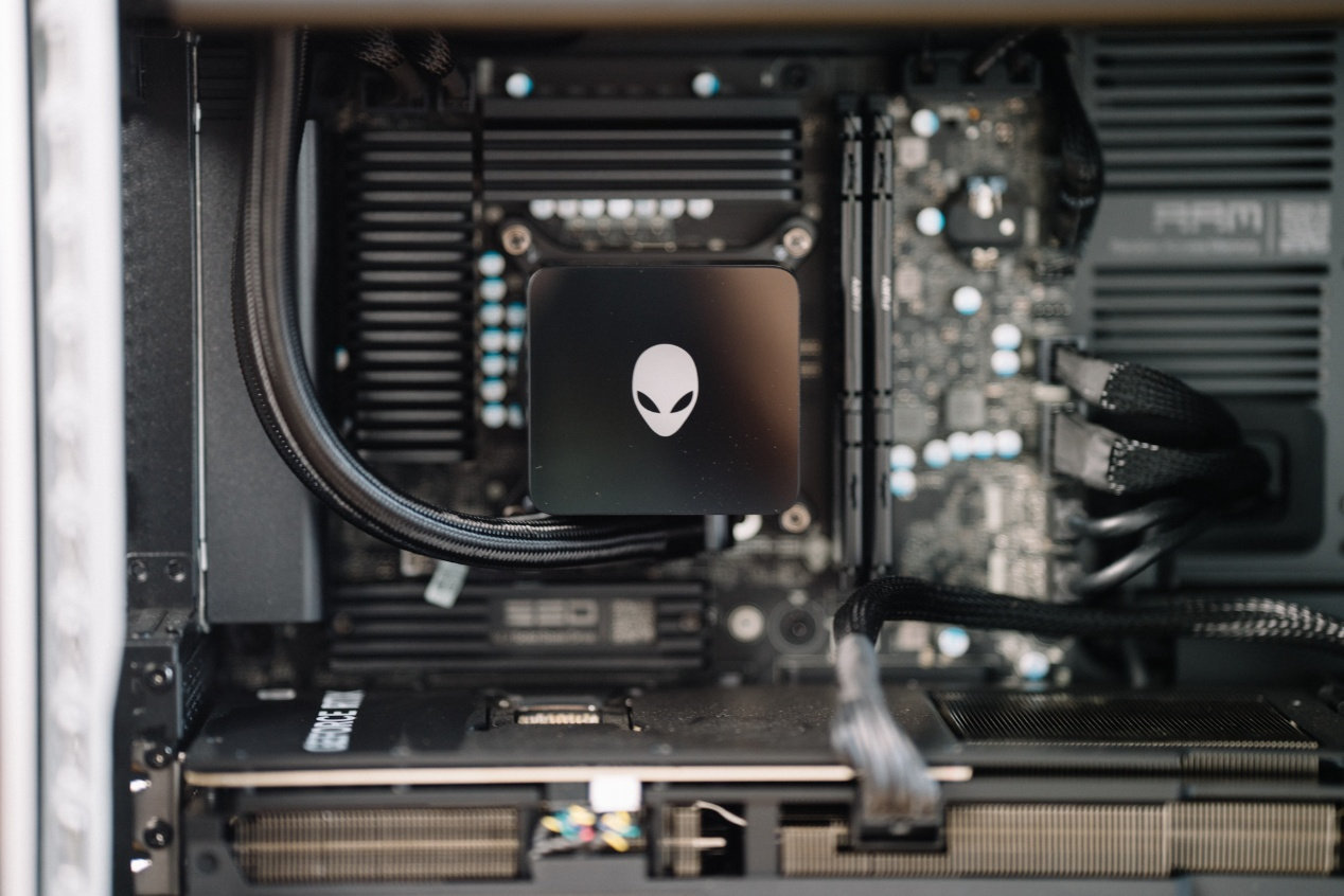 利用上方燈條、正面和下方風扇的燈光照亮了主機內部大部分輪廓,在CPU上方的水泵印上Alienware Logo,儀式感拉滿。