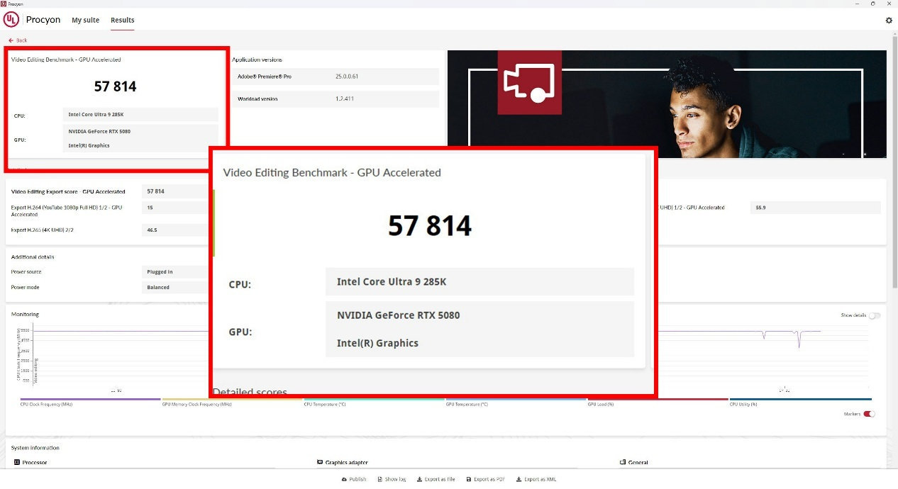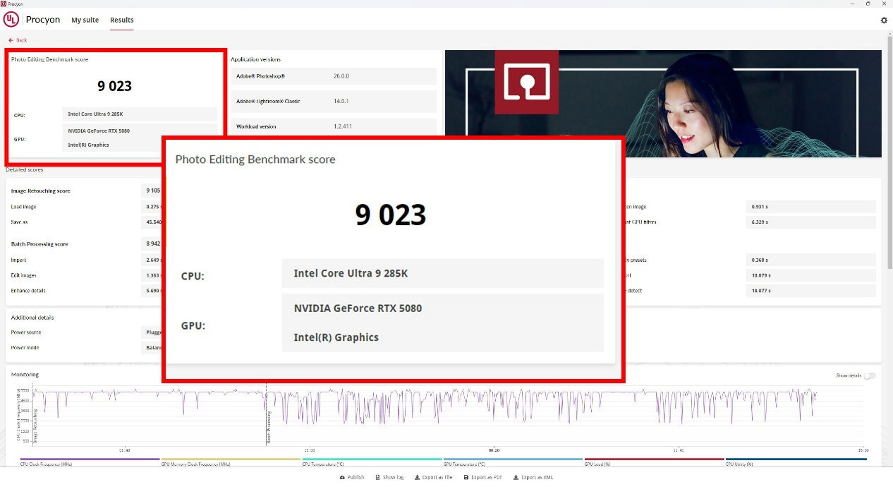 在視頻編輯和視頻編輯性能上,通過UL Procyon Video Editing Benchmark和Photo Editing Benchmark,可以看到Area-51具備很強的內容創作能力。特別是Video Editing在支持GPU加速之後,整體速度完全提升到了一個新維度,也正好彌補了酷睿Ultra 9 285K線程數不足的問題。