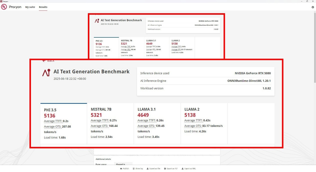 在UL Procyon AI文本生成基準測試中,包含了多個大語言模型LLMs作爲AI性能評估,包括Phi-3.5-mini-3.8B,Mistral-7B-v0.2 7B,Llama -3.1 8B,Llama-2 13B。也可以看到Area-51給予的充足性能釋放也讓Llama-2 13B這樣的大模型有很快的響應速度。