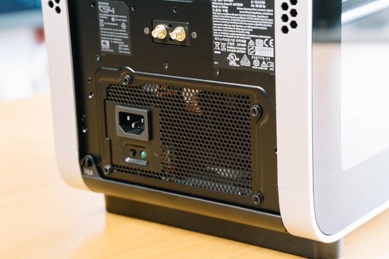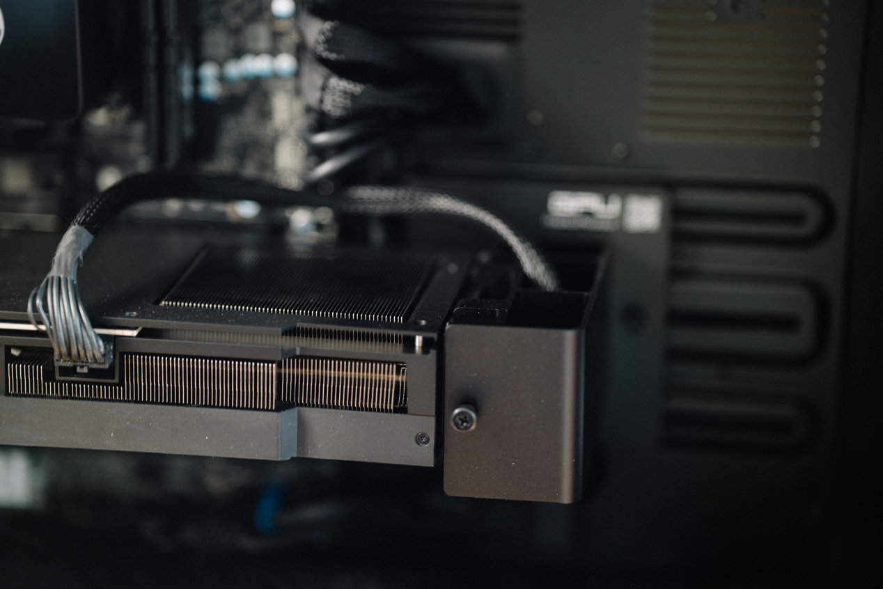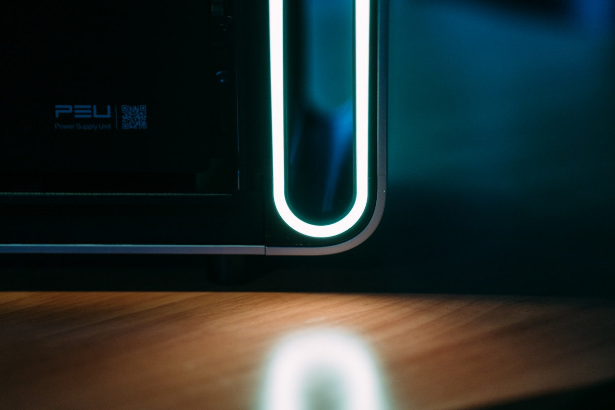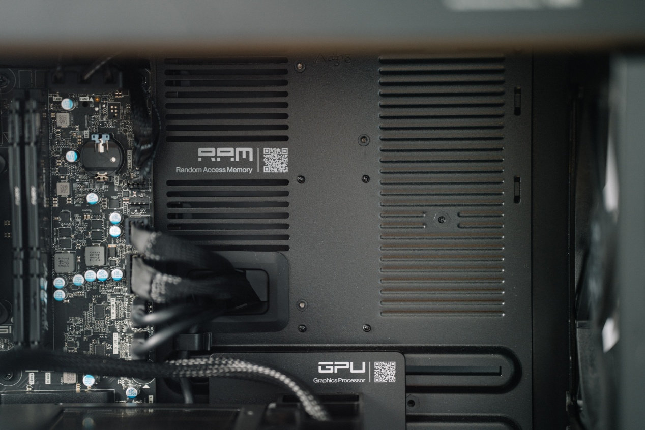 例如顯卡後端做了一個與機身相連的固定器支架,可同時兼顧支撐與線束收納,並且使用免拆設計,允許玩家更輕鬆的更換GPU。支持GPU的電源線接口爲12VHPWR,線材本身最高支持600W供電能力,即使應對最高端的遊戲顯卡也不在話下。