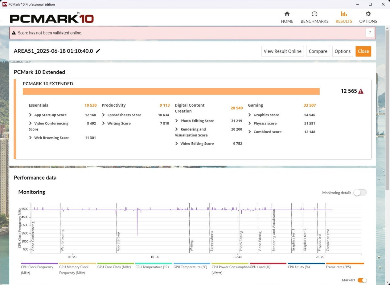 在整體性能上,PCMark 10 Extended可以看出,Area-51已經具備了很強的系統綜合能力。