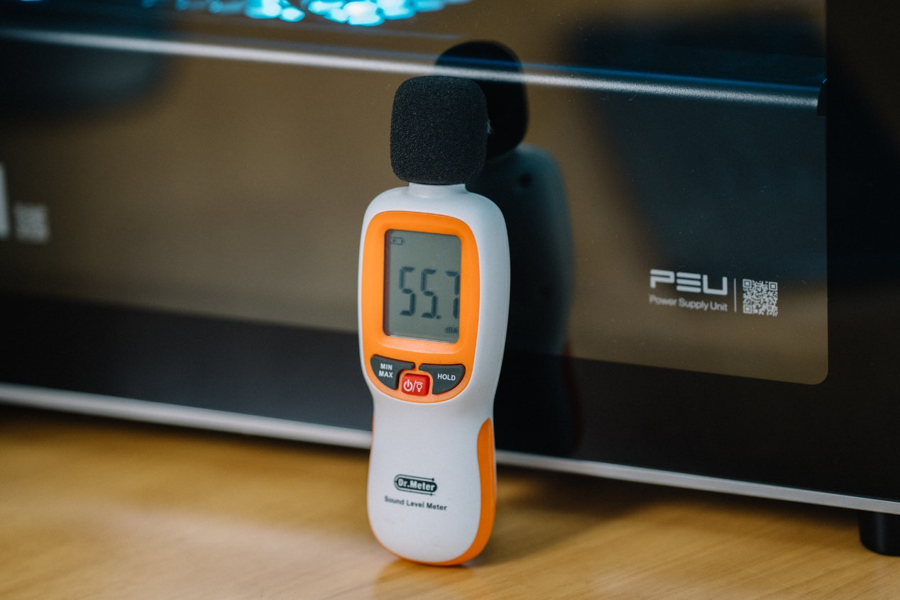 與此同時,機箱位的噪音控制在55.7dBA,在內部超過十個風扇同時工作的前提下,依然讓主機整體保持安靜,這是相當不容易的。