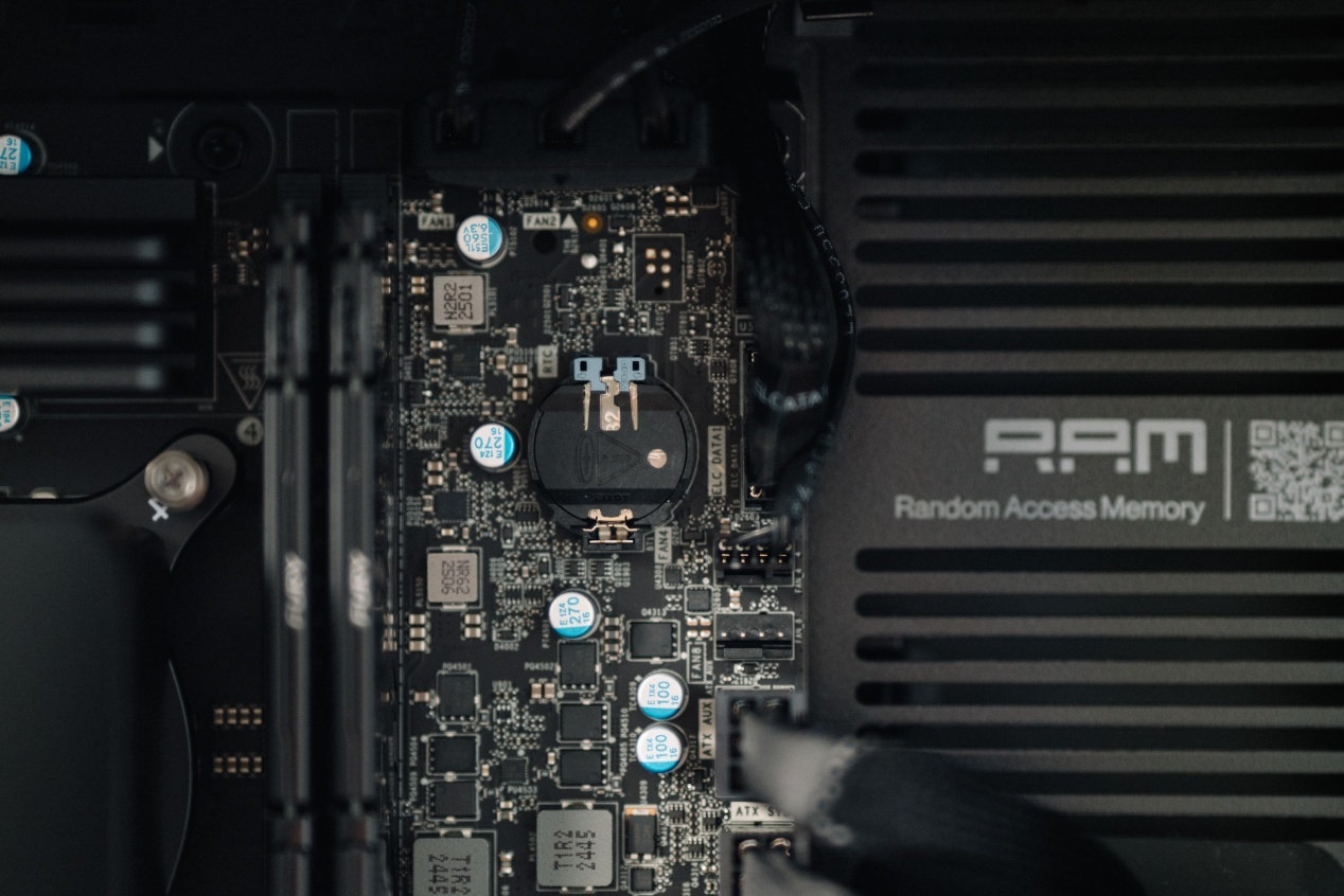 同時也可以看到內存條沒有使用RGB設計,但使用了黑色的散熱裝甲,使用的是金士頓Fury Beast DDR5-6400內存,單條32GB,雙條總共64GB。由於是定製化主板,只預留了2條內存插槽,這是基於品牌設計考量,雙插槽可以有效的避免四插槽的信號干擾問題。
