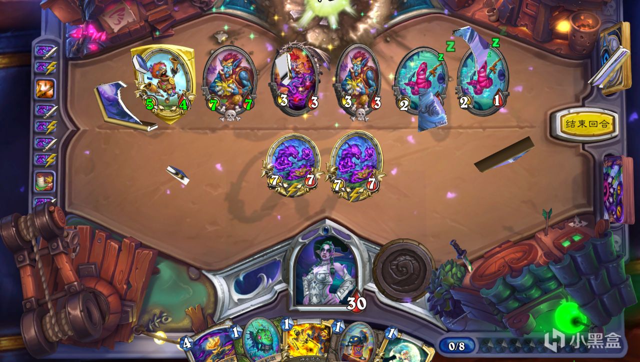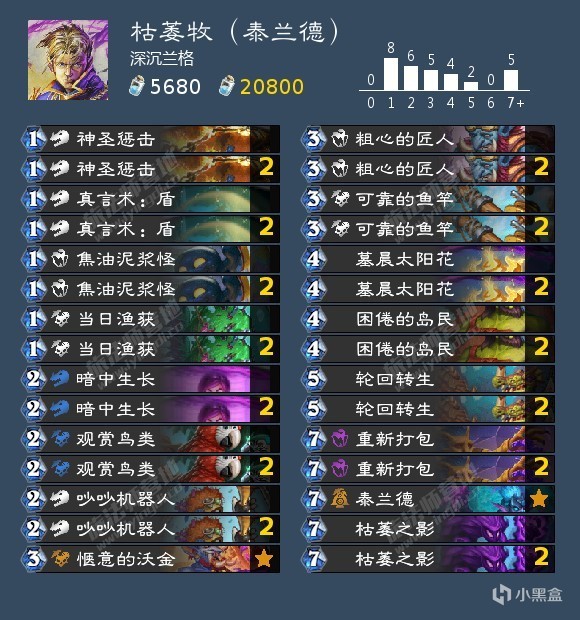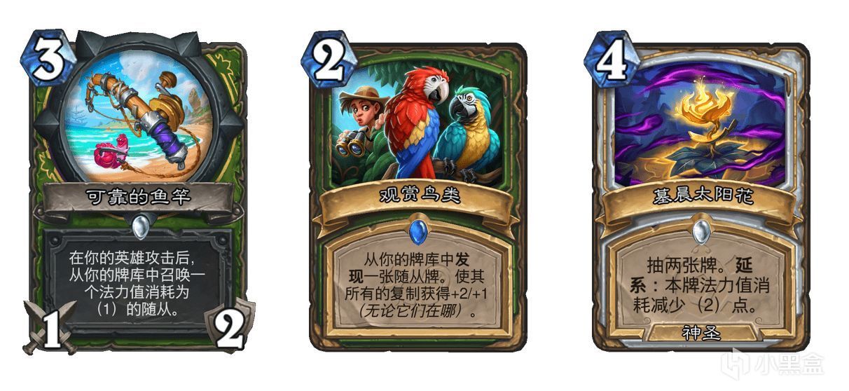 這套牌的思路很簡單,就是邊上嘲諷拖時間邊找組件。有魚竿和觀鳥這幾張牌,其實整體濾牌很快,基本70%的對局都能做到7費或者8費就斬殺。