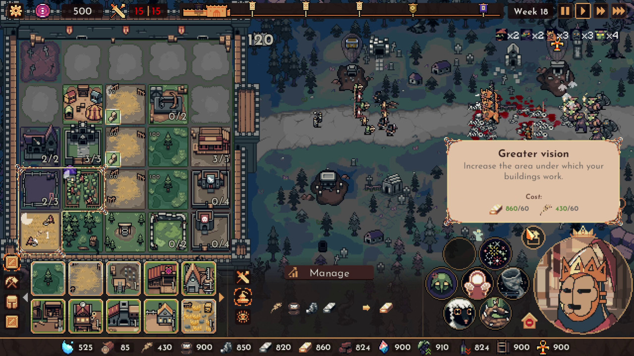 王之凝視 ,7.21 ,在城堡內有限的區域中建造不同的採集設施,收集資源,訓練士兵,抵抗一波又一波的敵人。