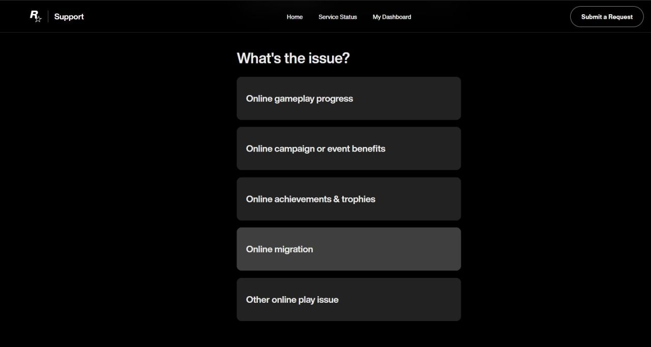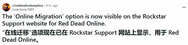 近日,Reddit 用戶 “Livid-Army-5857” 在 r/rdr2online 社區發帖,稱在 Rockstar 官方客服頁面曾短暫出現“Red Dead Online 在線數據遷移(Online Migration)”選項——這一功能此前僅在《三男一狗》(GTA The Trilogy)跨平臺移植時用於保留線上角色進度。