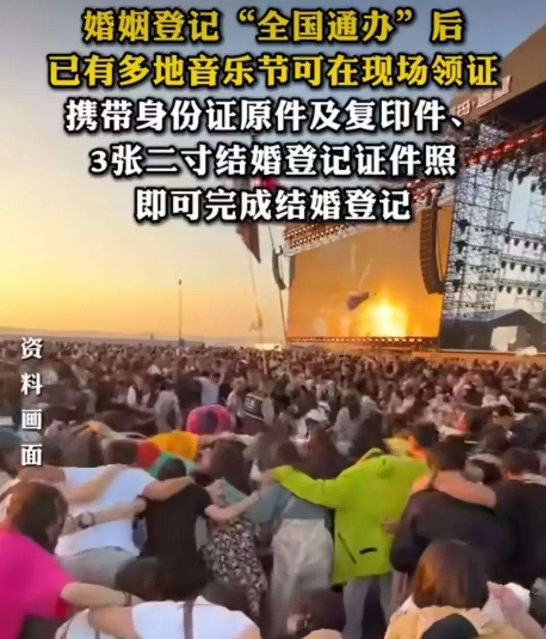 此前,四川成都、浙江宁波等地也有在音乐节举办期间引导办理婚姻登记的类似案例。