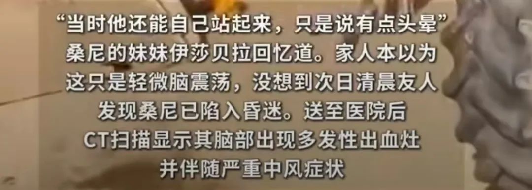 神经外科专家詹姆斯·唐纳森解释:“这种迟发性硬脑膜下血肿在青少年中尤为危险。初期可能仅表现为轻微头痛,但颅内出血会持续压迫脑干。”尽管医护人员进行了紧急颅骨切开和血肿清除手术,桑尼仍因脑疝形成离世。
