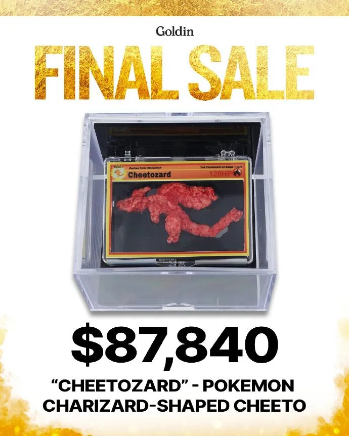 之前碧游姬给鸡友们介绍过,一块奇多因为神似宝可梦里的喷火龙,就拍出了合计8w多美元的价格。