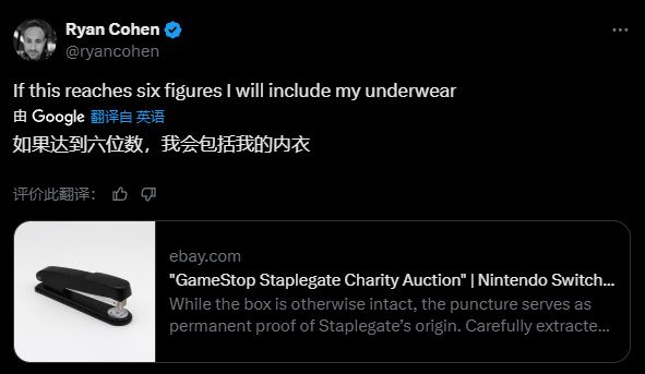 一想到GameStop的CEO表示超过10w刀就给拍到的人寄内裤