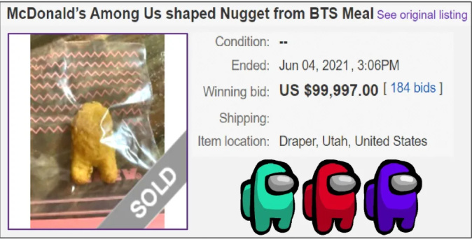疯四9.9人民币能买十块的麦乐鸡,在这拍出了9.9w美元的天价.