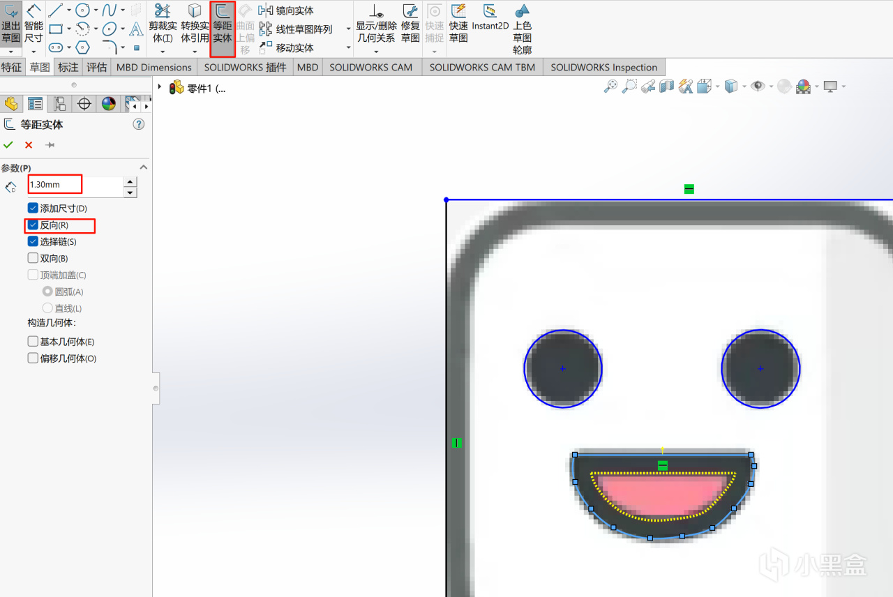绘制完草图,依然是使用拉伸工具拉出表情部分