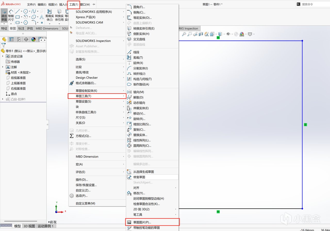 在界面上画图,然后把下半部分用拉伸切除切掉