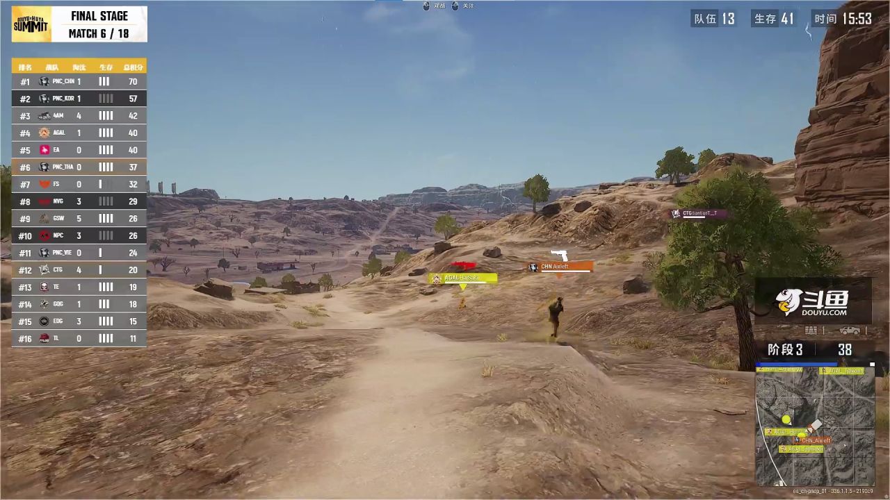NVG戰隊的WIND選手也是在近點拿一把噴子戲耍韓國隊,韓國隊的近點三個都被放倒,韓國隊的最後一個也被4AM戰隊的shen給帶走,韓國隊的分數定格在57分。