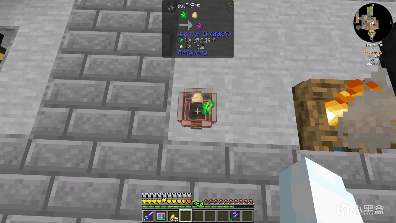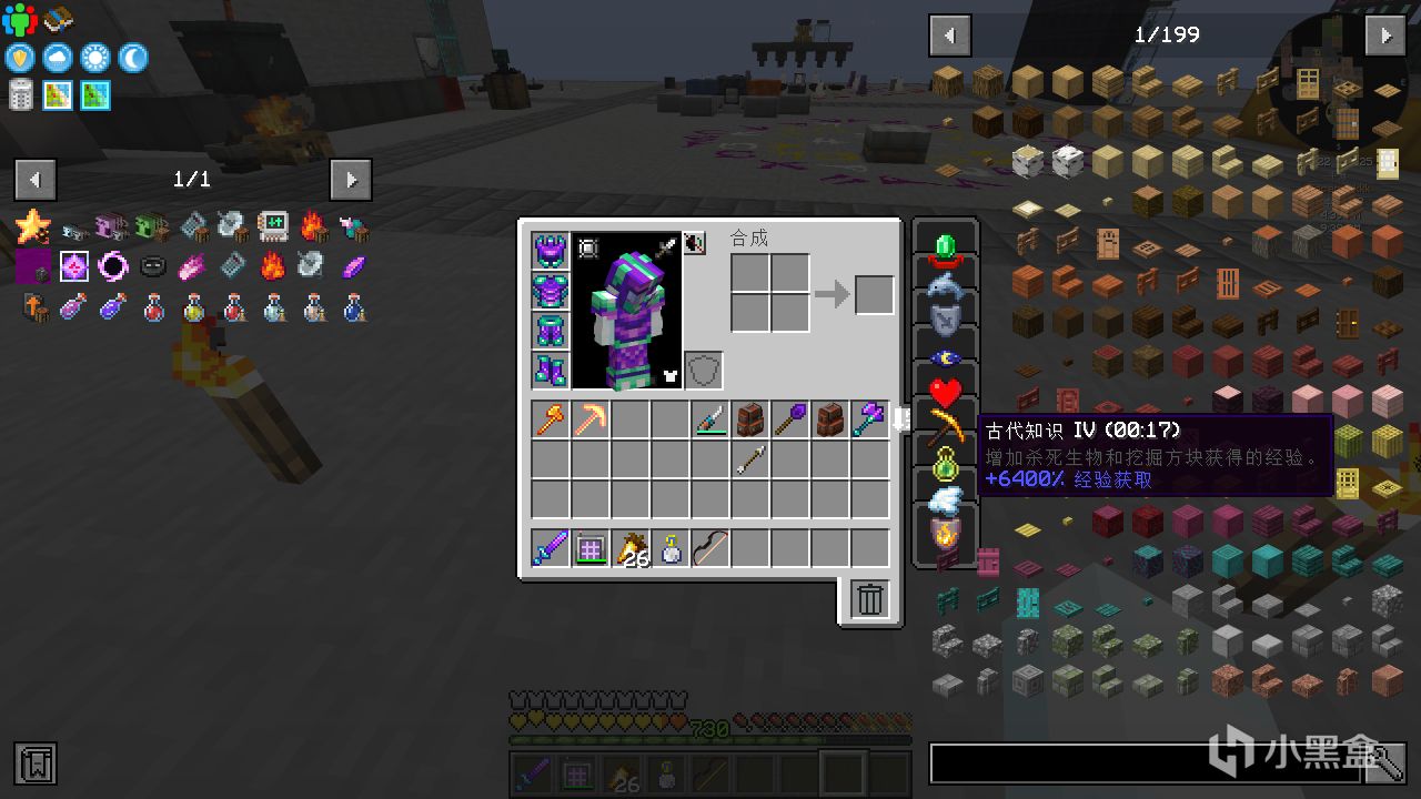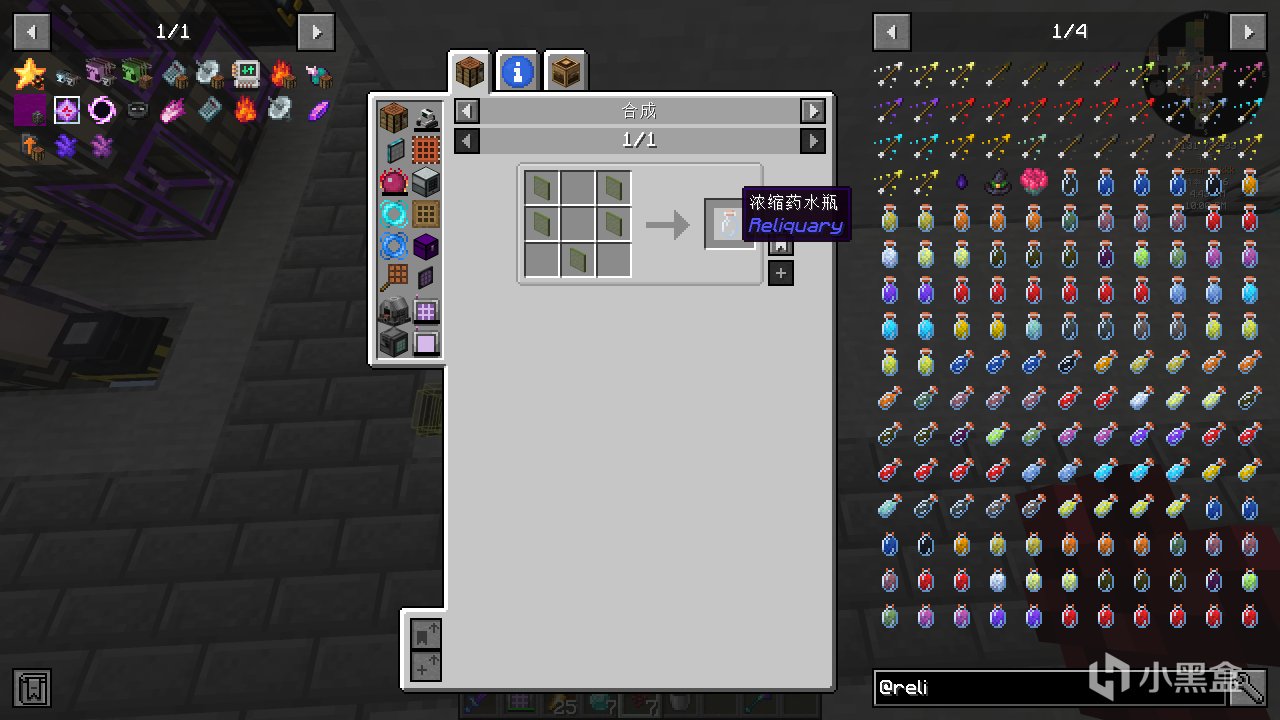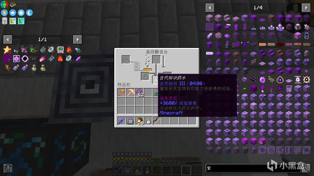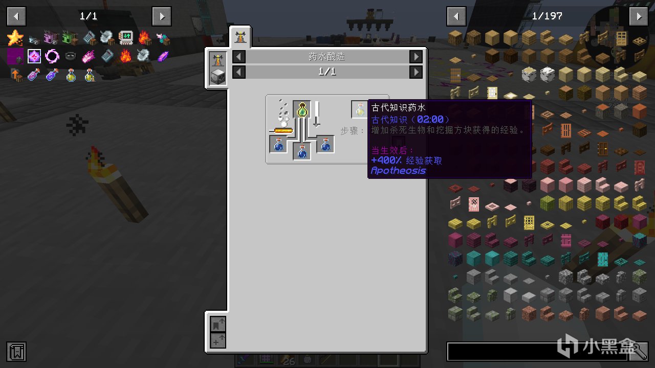 首先合成普通的古代知識藥水,並給它紅石粉變成四分鐘的藥水。
