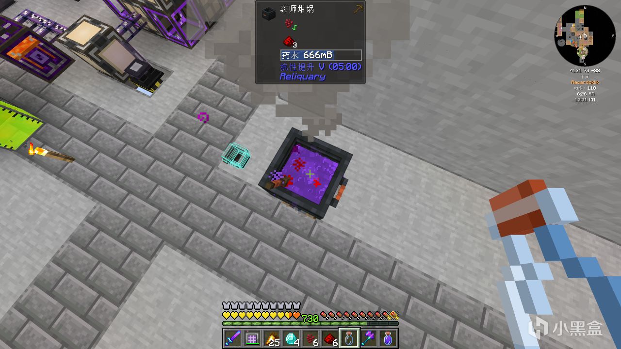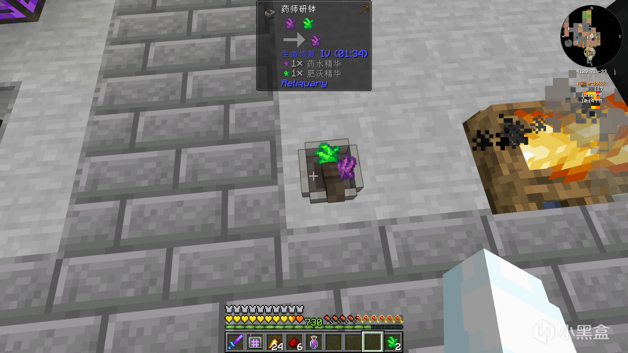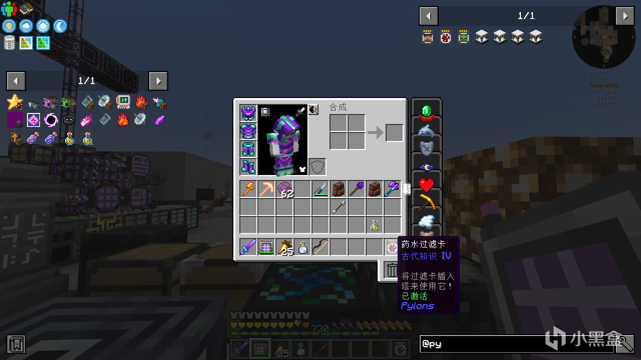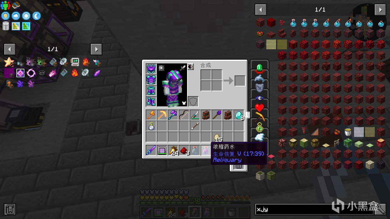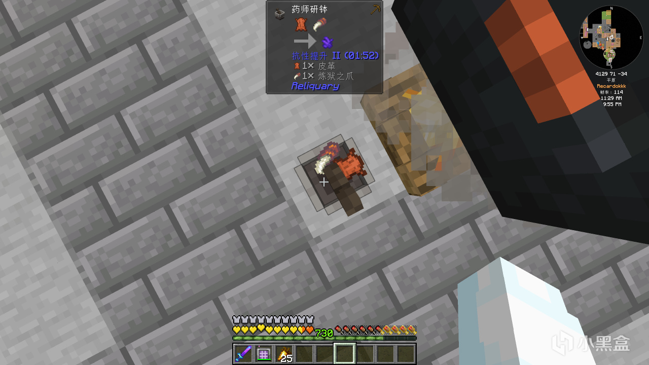 首先合成普通的古代知識藥水,並給它紅石粉變成四分鐘的藥水。