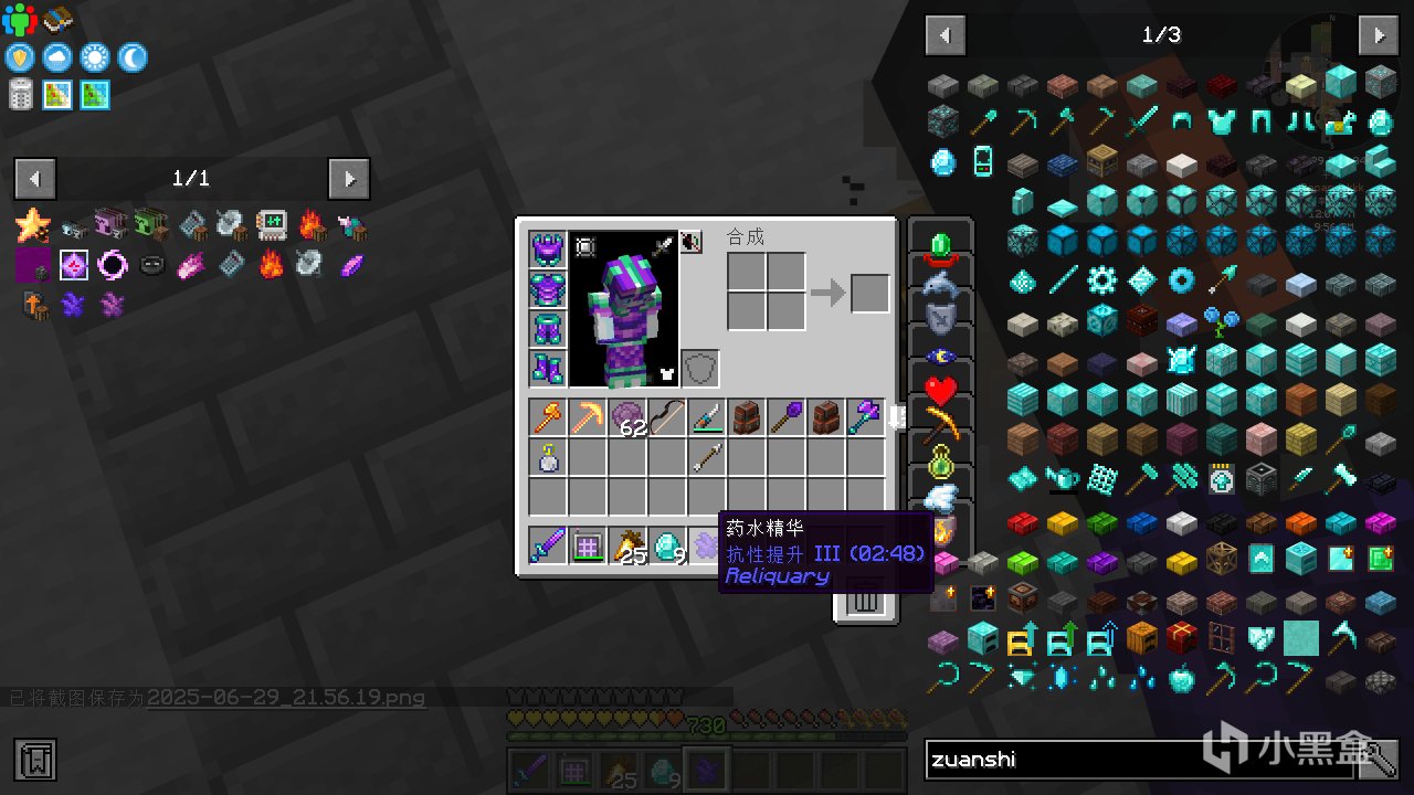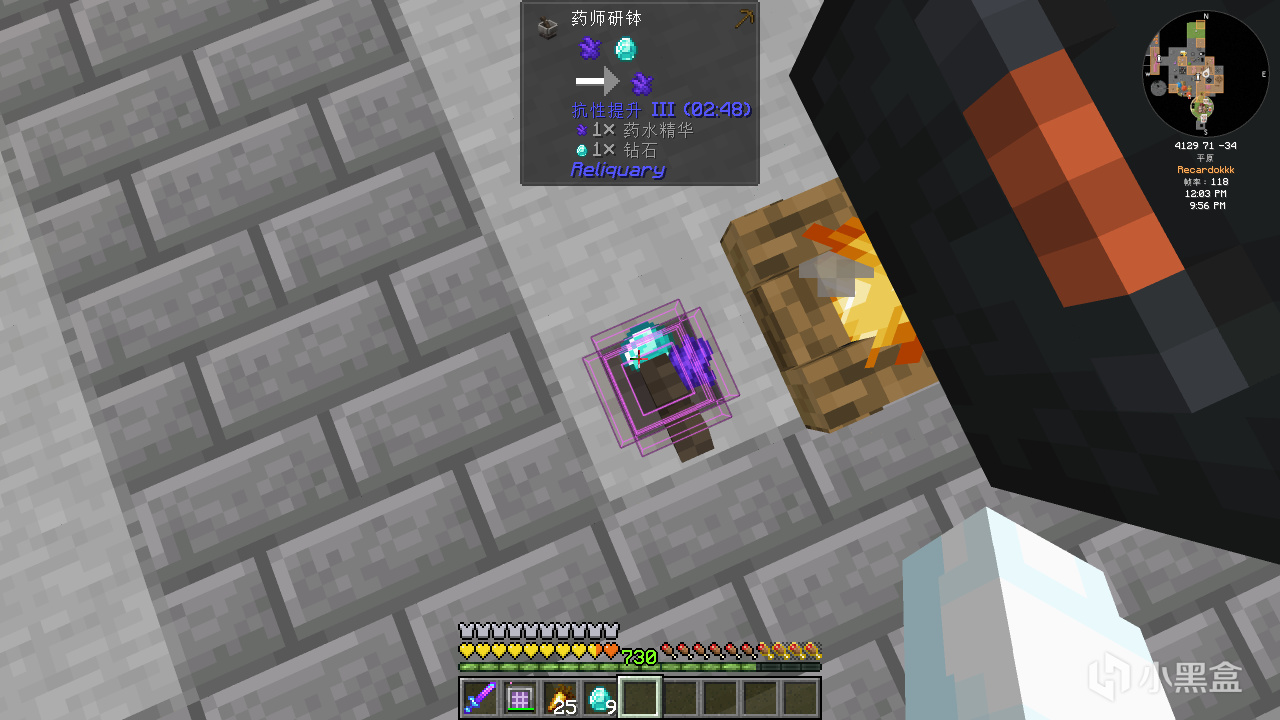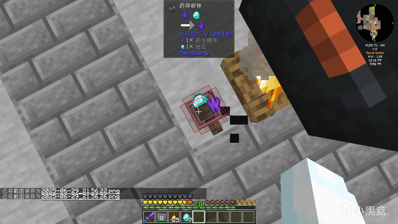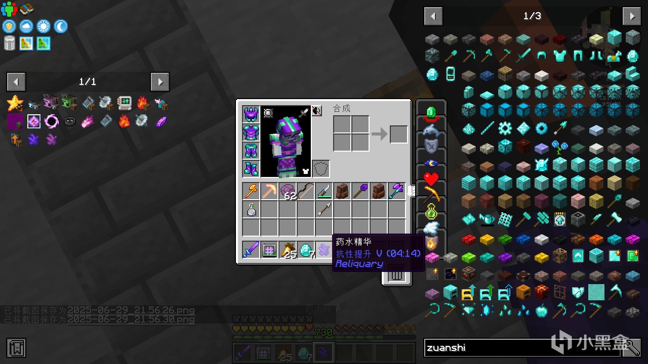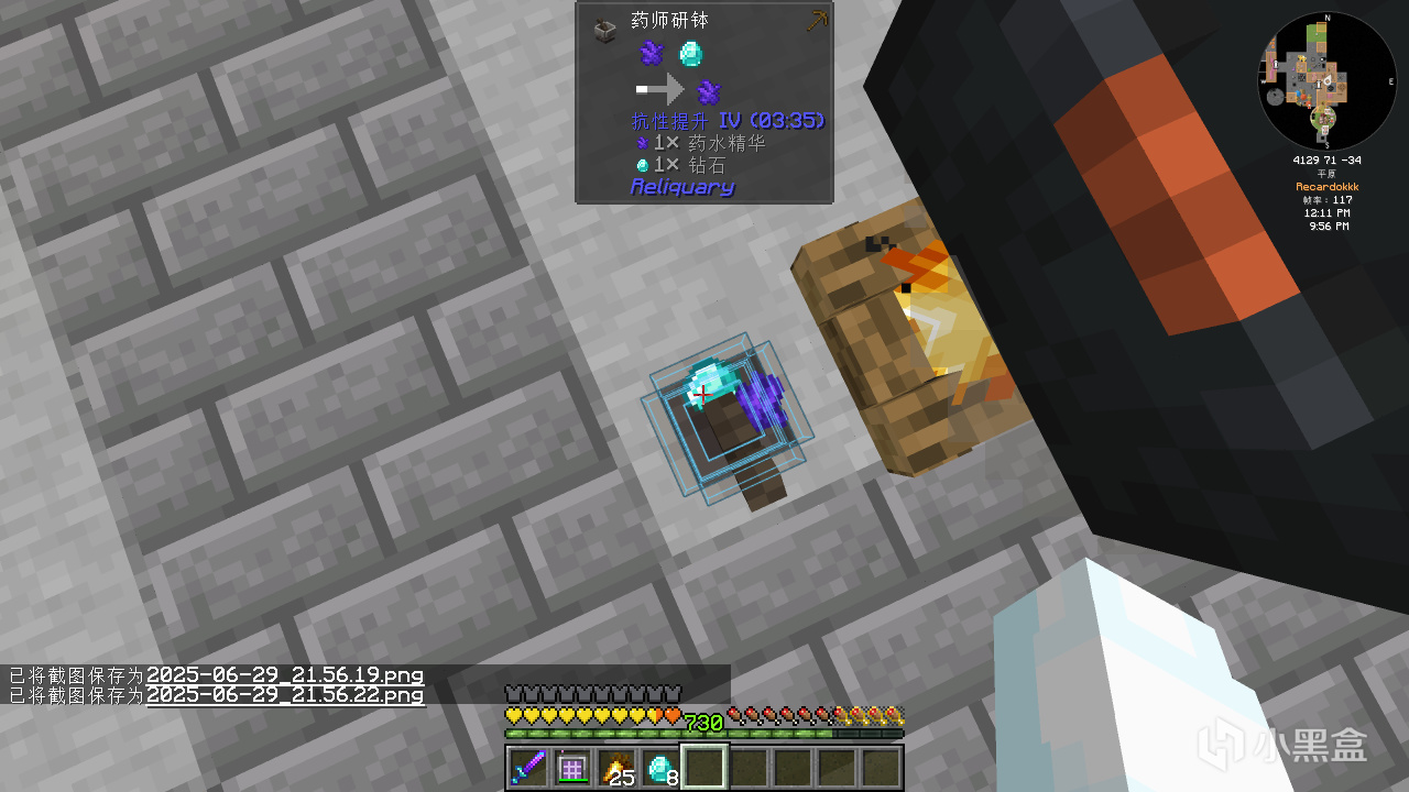 首先合成普通的古代知識藥水,並給它紅石粉變成四分鐘的藥水。