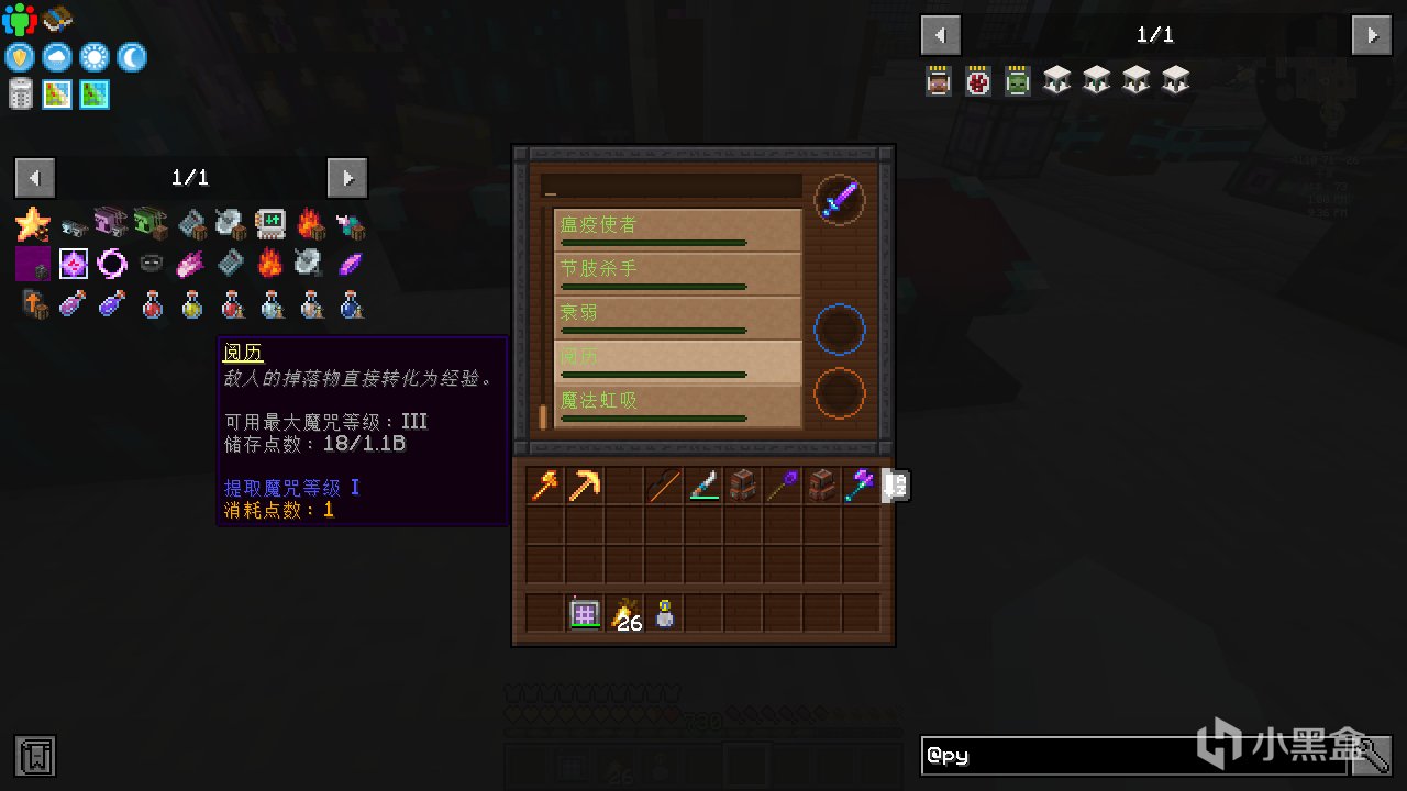首先可以給你的劍打上閱歷的附魔,但代價是無法獲得掉落物。