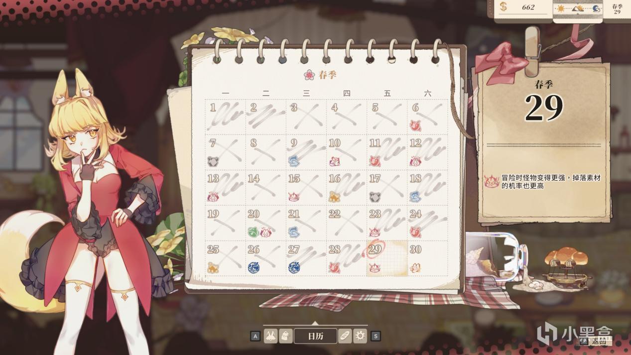 最后则是面包店里的日历了,在这里可以看到每天的经营加成或者冒险加成,因为咱们在一天中只能选择经营或者冒险中的一种这一天就过去了,所以根据加成来决定经营还是冒险才能更快的完成咱们的目标。