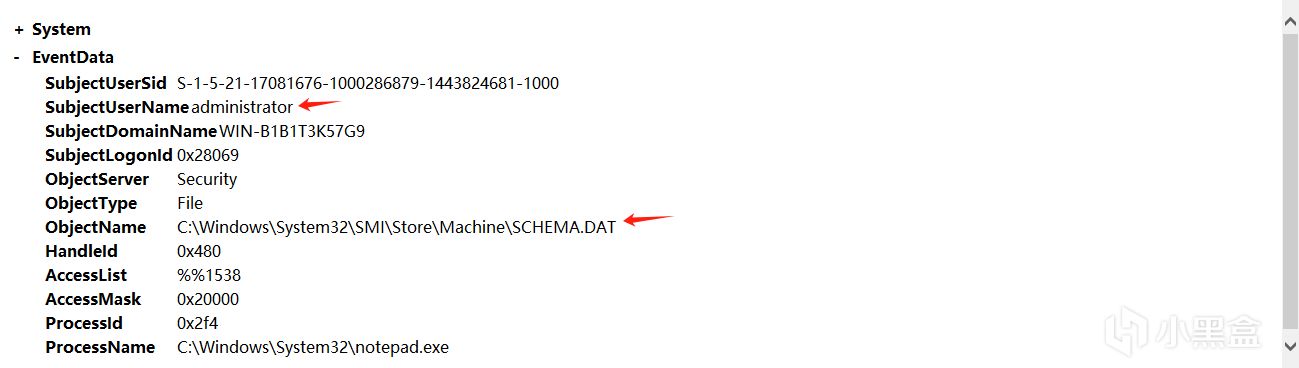 筛选后,发现有账户高频访问C:\Windows\System32\SMI\Store\Machine\SCHEMA.DAT,system32通常属于重要且高敏感文件,不管是什么用户,怎么高频率的去访问高敏感文件实属可疑