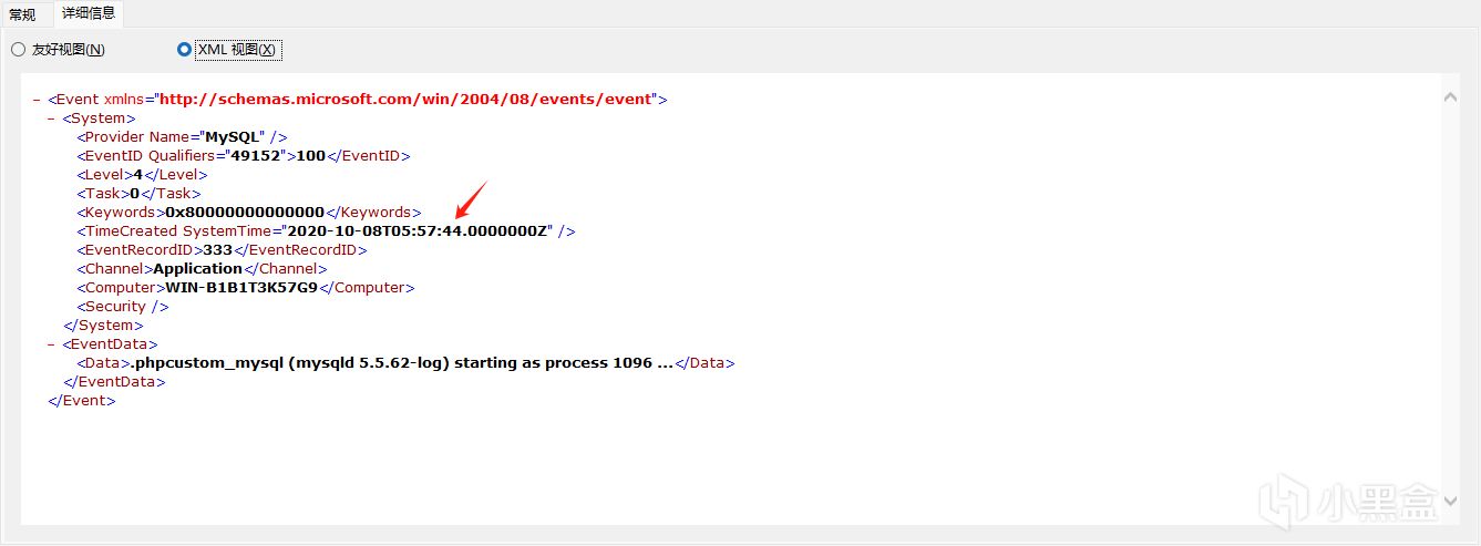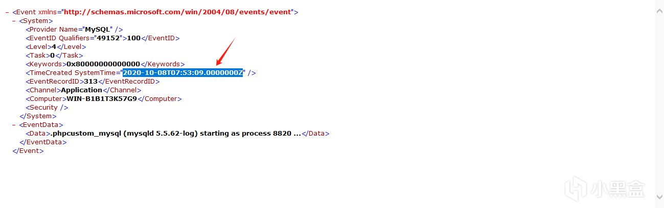 表面上看最早的是8820,最晚是10,但是通过对比它们的详细信息就可以发现,最晚的是其实是8820,为什么怎么判断,因为<TimeCreated SystemTime>标签是准确记录事件在系统中发生的时间,且使用 UTC 时间可以避免不同时区导致的时间混乱,方便日志分析、故障排查时统一时间基准,10月份还有其他的进程PID,这里不过多展开,因为其他的故障事件都没有8820晚
