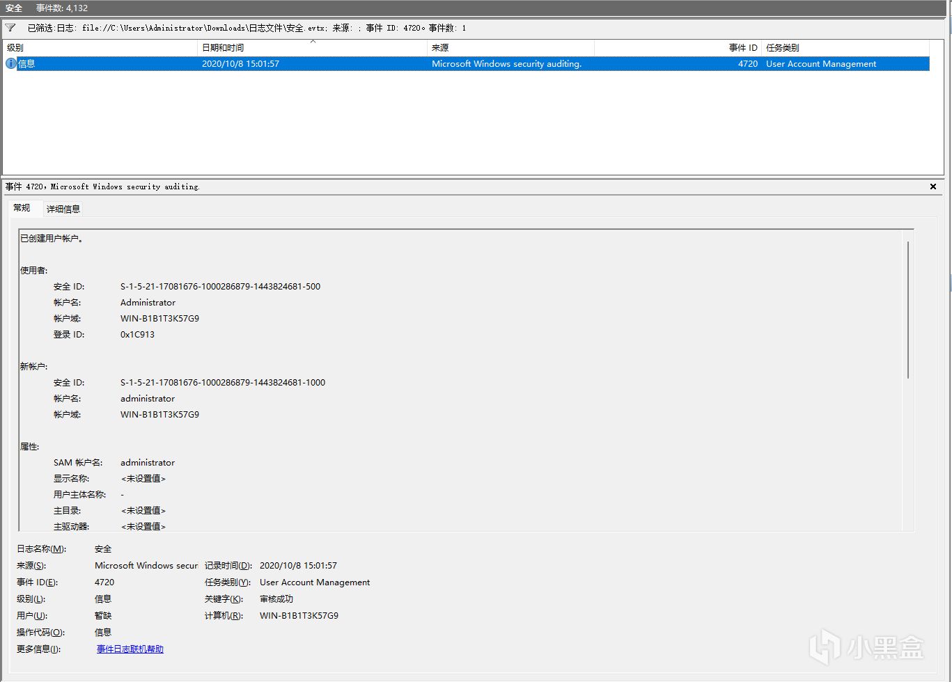 查看4720ID判断是否存在影子账户或黑客创建的其他账户