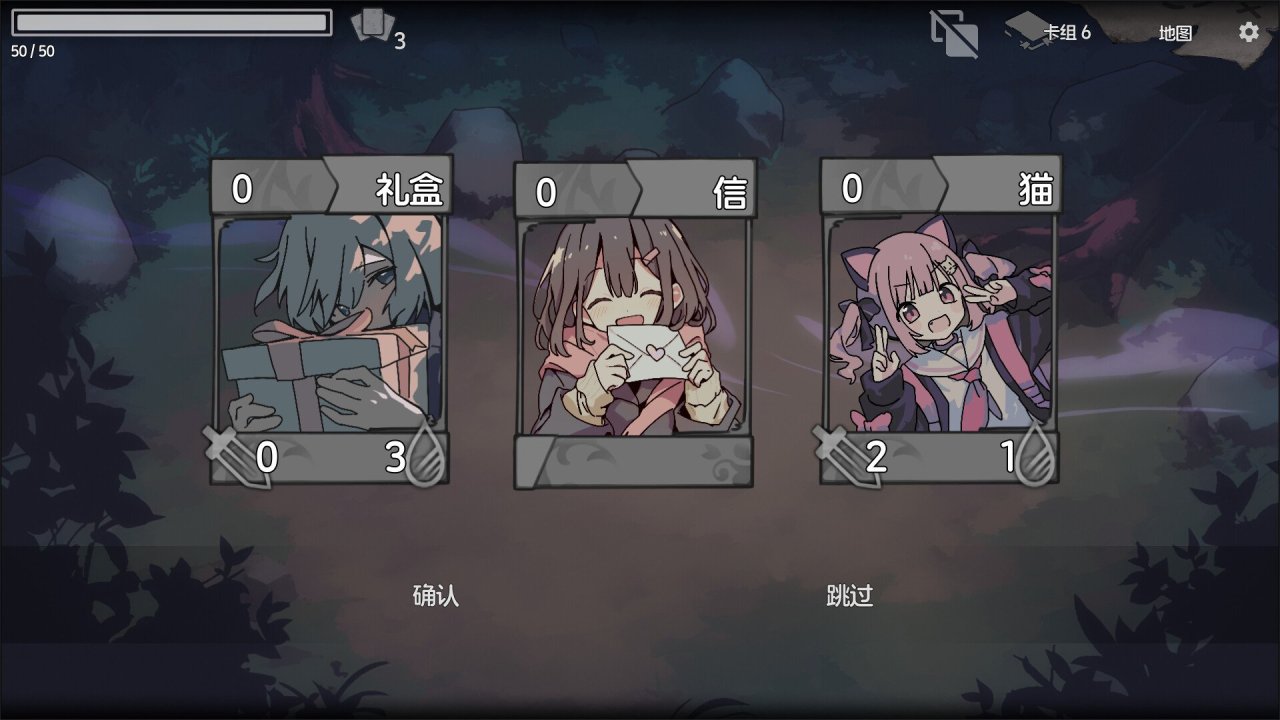 本作的玩法为卡牌,但又有点不太一样的地方,那就是,卡牌会出现一些保护机制,在游戏开始前玩家可以选择让这些卡牌的保护机制以文字情绪(比如孤独,忧郁等)。