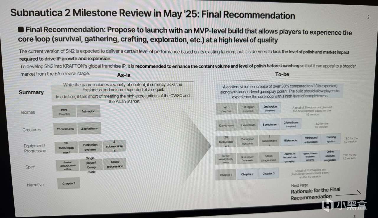 《深海迷航2》2025年5月里程碑評審最終建議(藍色爲所需要增加的部分)