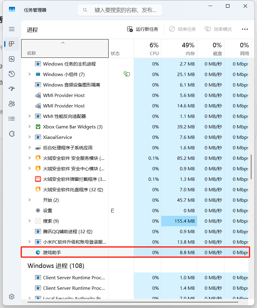 最後關閉Edge,打開任務管理器檢查是否有殘留,如果有如下圖的進程,那就是“遊戲助手”界面沒關掉,回到上一步關閉“遊戲助手”界面