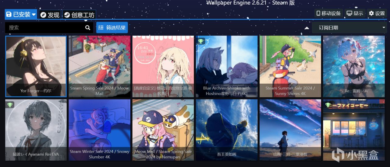 Wallpaper Engine(别名小红车):基本steam人手必备,壁纸多样,自行挑选,需要steam付费购买下载,开机自启动。