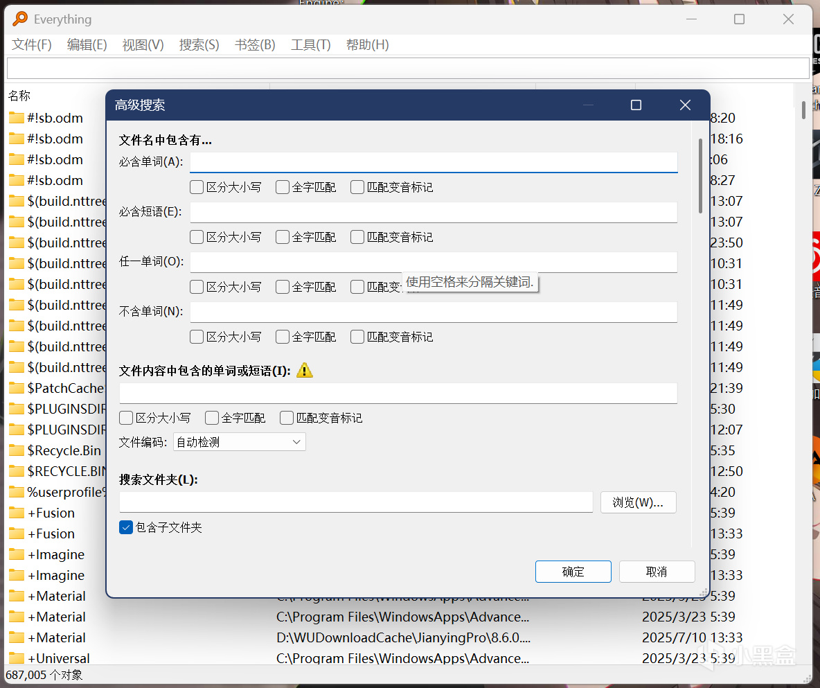 Everything:找文件的软件,搜索-高级搜索,把想找的文件名打上去,还可以限定大小写之类的,找文件的速度比在电脑中自己找文件的速度不知道快了多少倍,建议Edge浏览器搜索Everything下载。