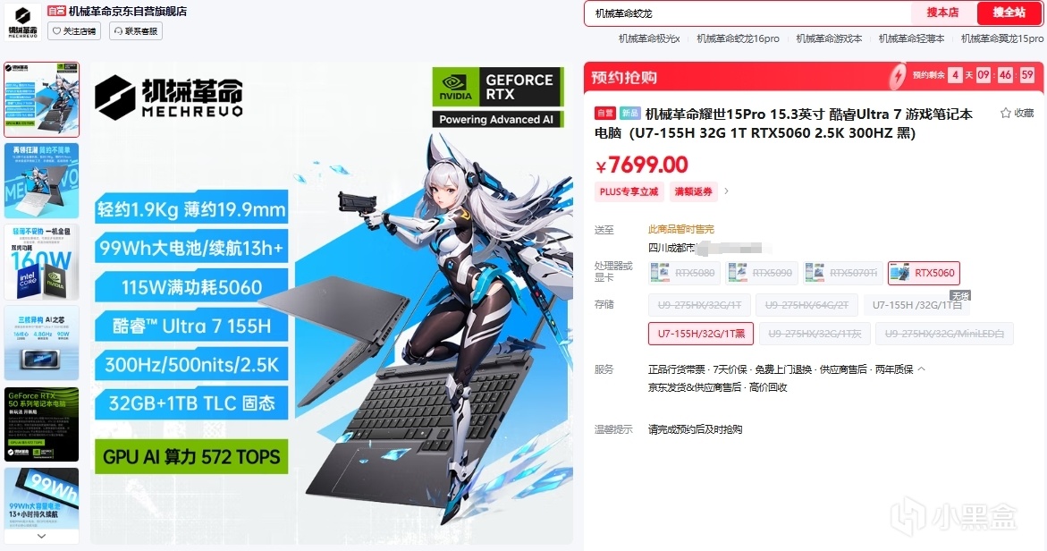 目前率先上市的是搭载酷睿 Ultra 7 155H 处理器的版本: