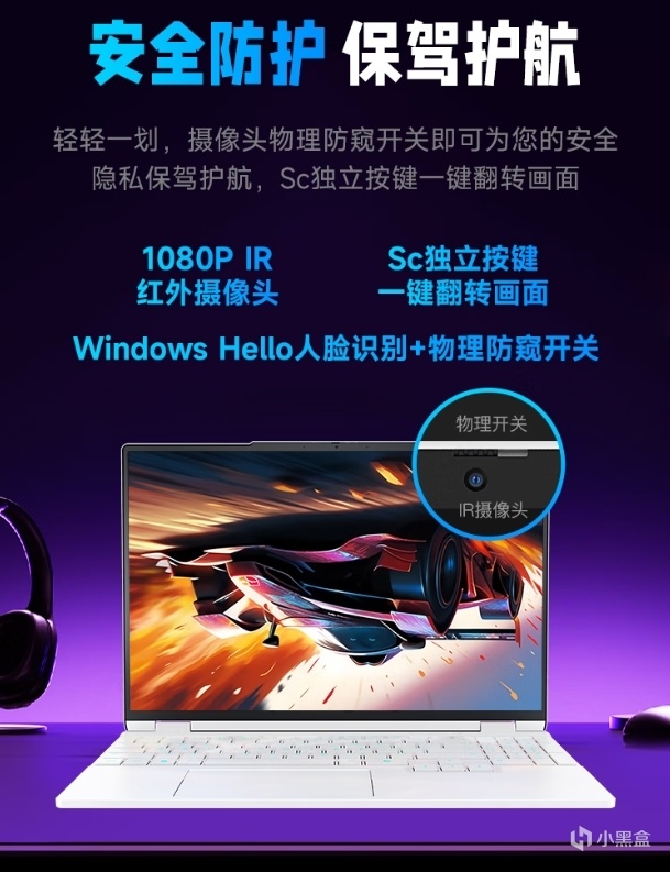 ③ 配备 1080p IR 摄像头,支持物理关闭和 Windows Hello 人脸识别登录。