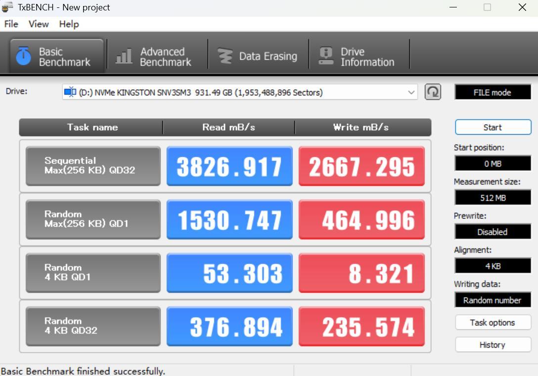 祥硕的ASM2464PD芯片可以同时兼容USB4和雷电3,不得不说,是一款非常神奇的芯片。而1TB容量版本NV3的存储颗粒是TLC,在这两个产品的组合下,最小最快的移动固态硬盘就出现了。整个移动硬盘的顺序读取速度可以达到38Gbps,顺序写入速度最大可达27Gbps。通过HD TUNE的文件基准测试,写入200G文件后,依然没有掉速,作为读写大容量资料或者存放游戏的移动数据库,还是非常不错的。