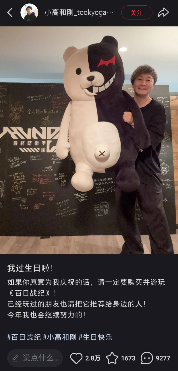 在幾天前的生日,小高也仍舊不忘初心,藉此宣傳《百日戰紀》。從獲得的生日祝福來看,也儼然是在國內最受歡迎的海外遊戲製作人之一了。