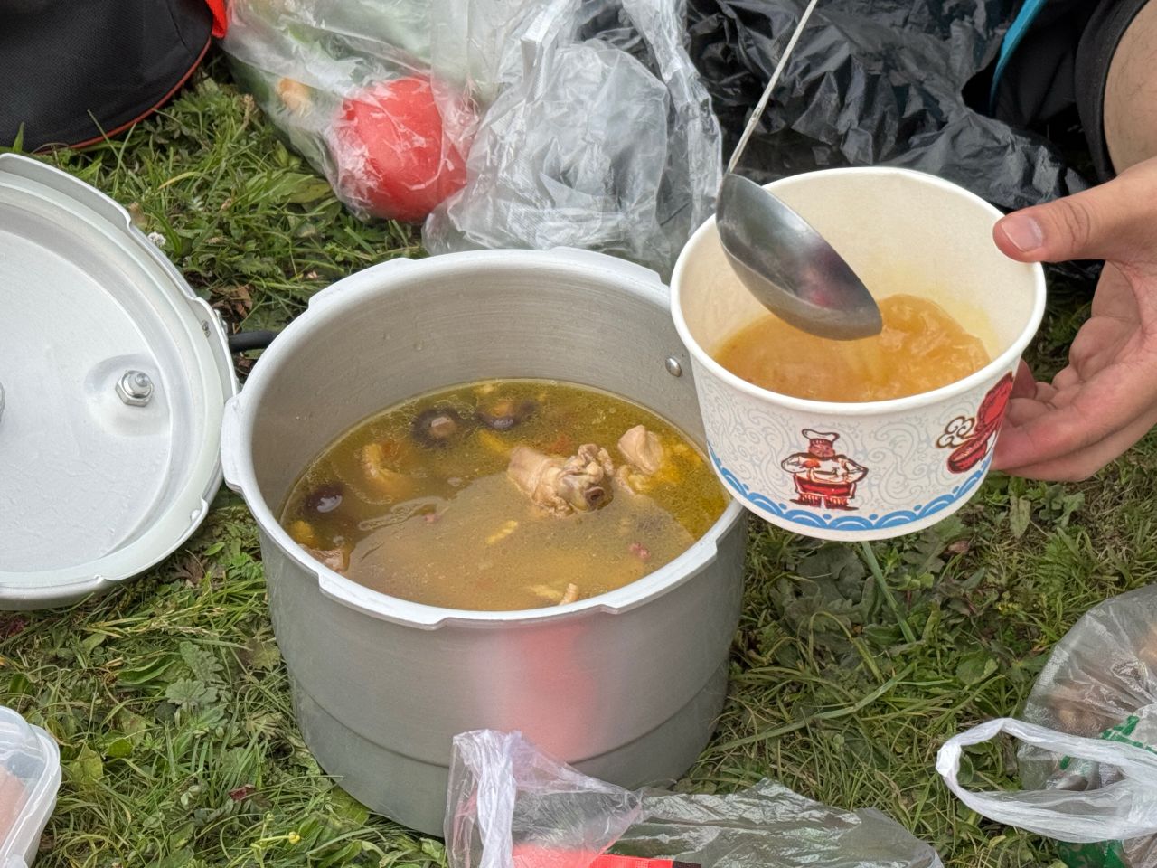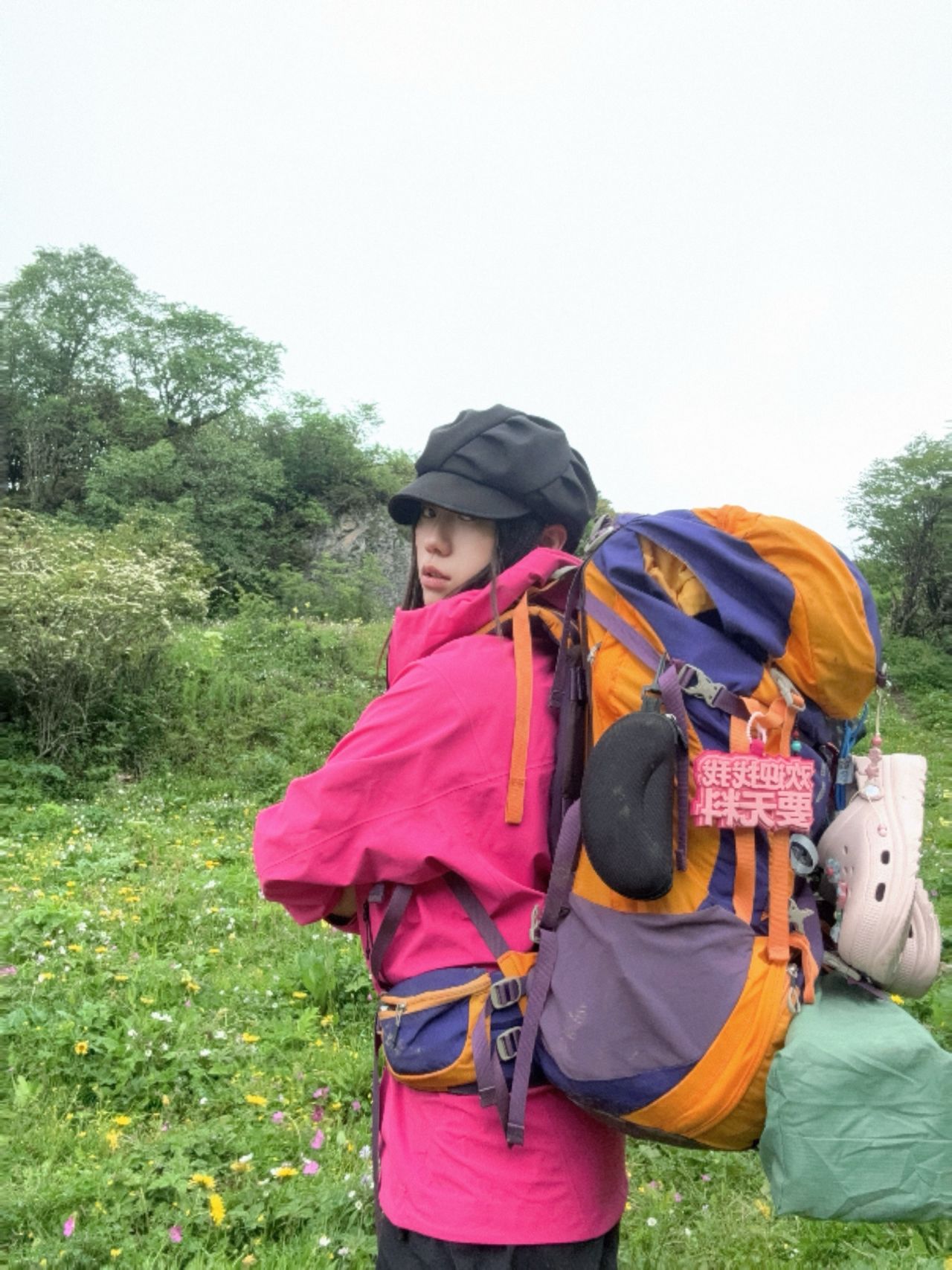 三個人三個大包包🥹四個鍋和一個烤盤準備喫烤肉,隊友背了一個高壓鍋準備燉雞湯是真的驚訝到我了。我們三個人分別60斤40斤30斤(我就是那個背的最少的30斤)