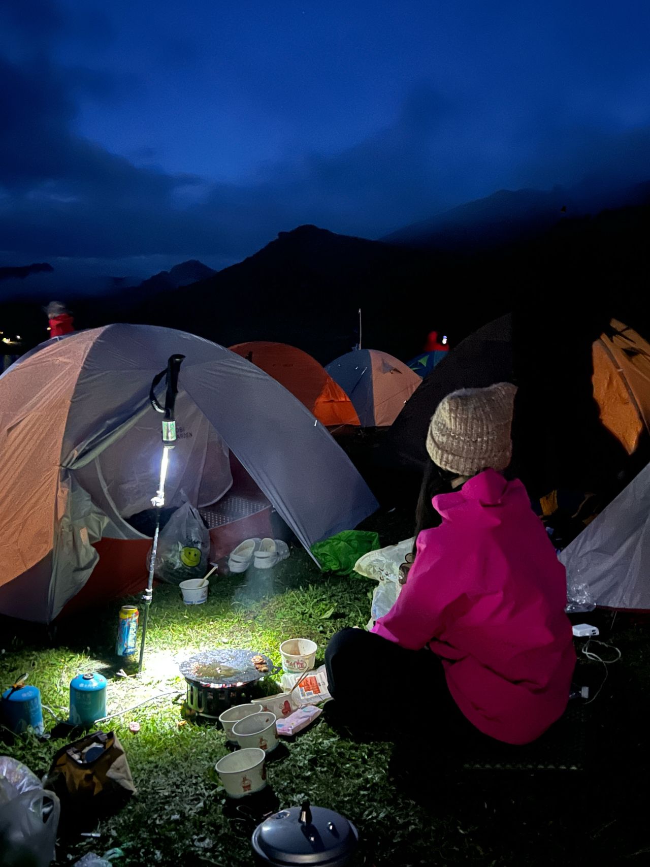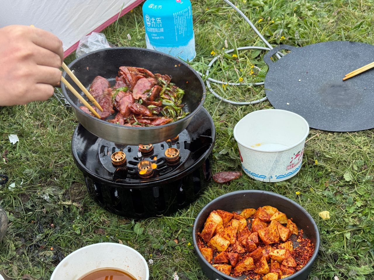 營地全是驢友紮營,路過好多人都說我們喫的好香,然後我們也分享了喫的出去,嘎嘎好喫,遇到了嘴甜溫柔姐姐,叫我們哥哥姐姐讓我們幫忙搭帳篷拍照,遇到可愛小孩和大叔找我們幫忙弄爐子