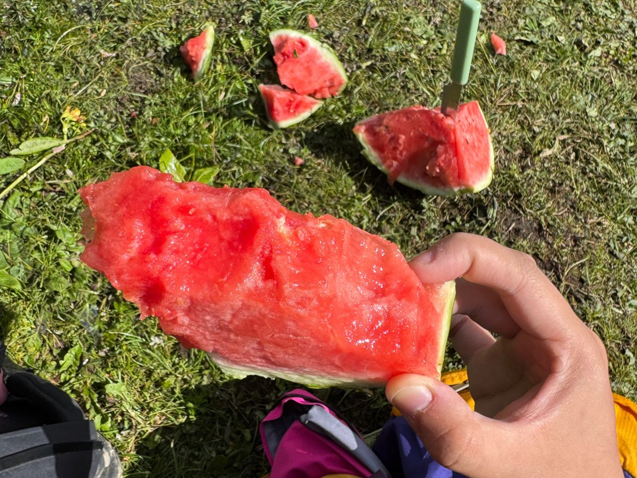 第二天我睡的像豬一樣沉隊友九點才把我叫醒然後出發,早餐喫了泡麪和隊友背上來的西瓜🍉