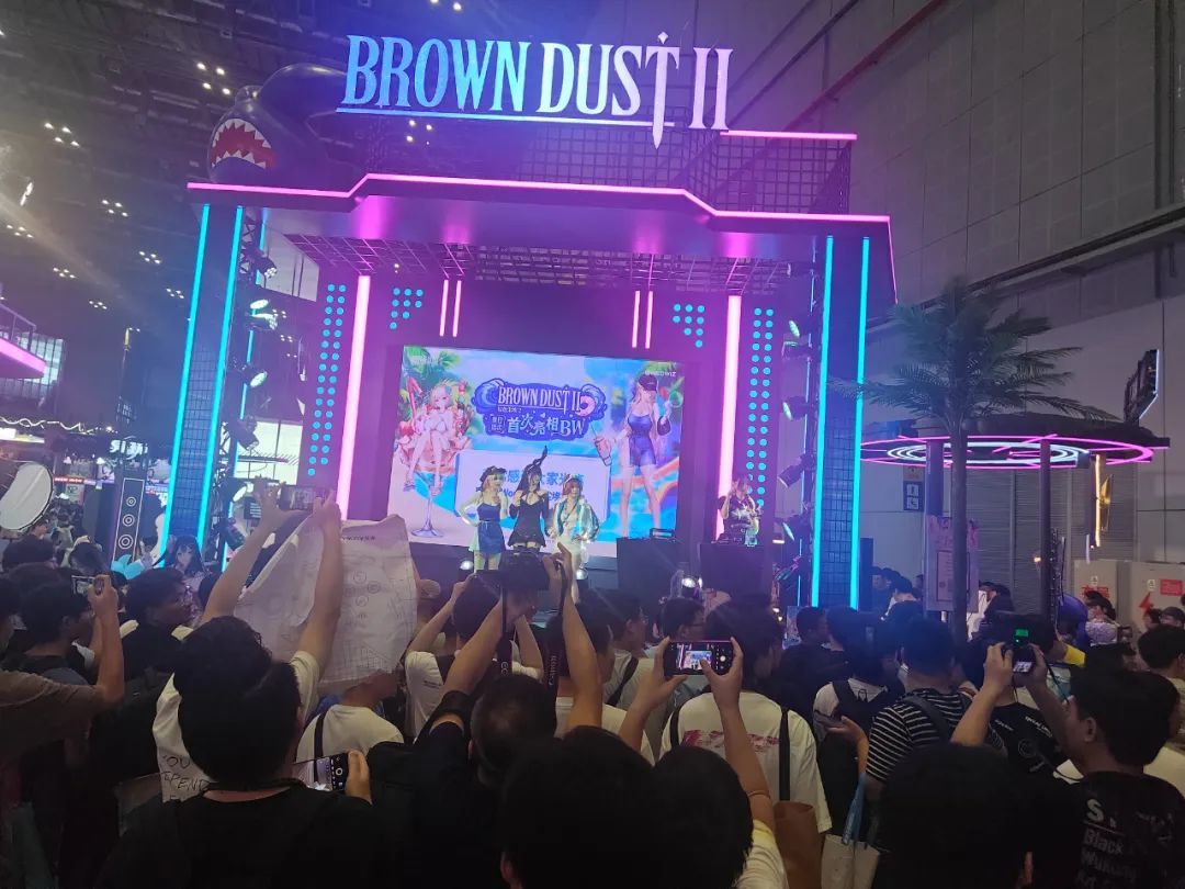 另一些展臺拉攏觀衆的手法則更是無需多言,比如《棕色塵埃2》展臺雖然“韓援”小姐姐在第二天後淡出主舞臺,但玩家的熱情依舊,AR屏上的角色展示栩栩如生,光是抽卡所展示的遊戲立繪,就已經讓許多玩家走不動道。