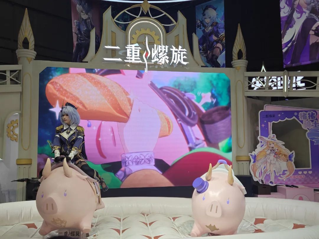 《二重螺旋》這邊依舊帶來了此前參展的經典項目,電動搖搖豬。除了基本的拍照打卡外,不少玩家還挑戰了騎豬挑戰的最高難度,搖頭晃腦的場面一度十分歡樂。