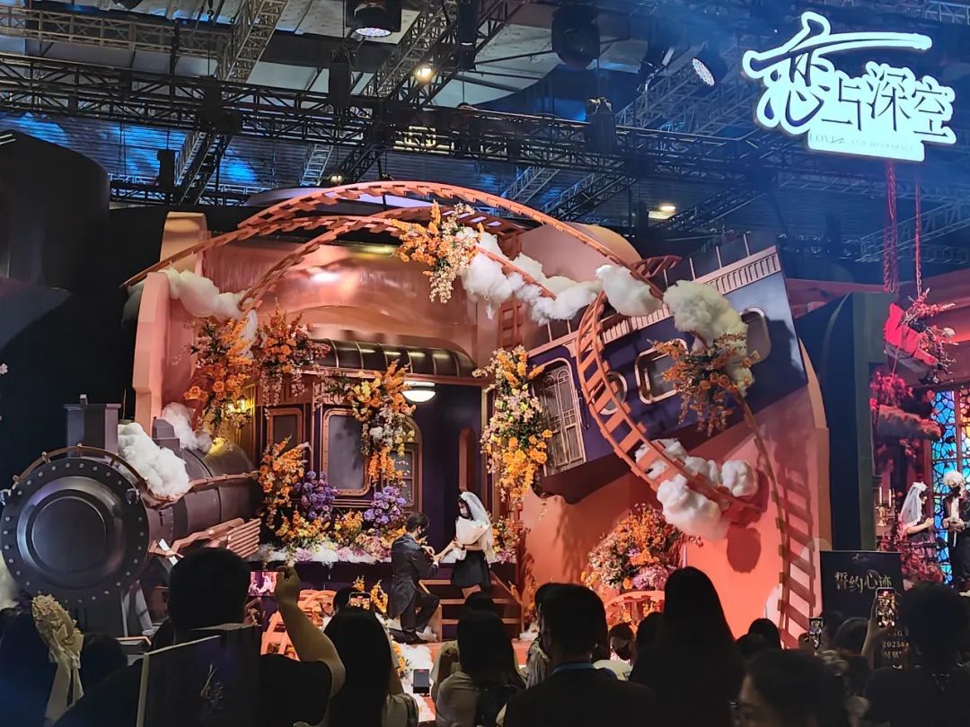 踏入4號展館最深處,《戀與深空》展臺前的人潮蔚爲壯觀,長隊蜿蜒曲折,甚至一路延伸到了館外。疊紙此番也相當上心,爲五位男主量身打造了各具特色的“誓約之地”,每一處裝點都飽含深情與浪漫。