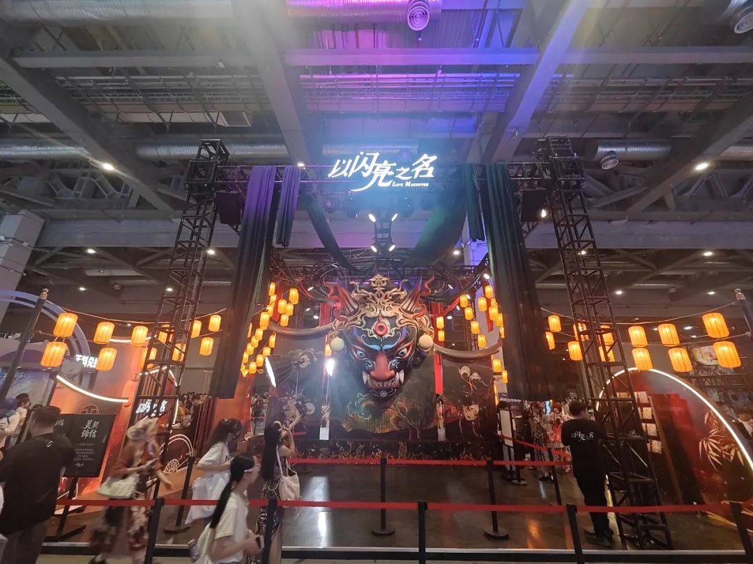 《以閃亮之名》的展臺走的是國風賽道。巨大的雙形態非遺儺面神祕而深邃,彷彿在訴說着千年的故事,牽引着每一位路過者的目光。身着華服的coser們如畫中人般佇立,共同編織出一場令人屏息的中式美學盛宴,讓玩家們在這方寸之地,感受到了穿越千年的深情厚意。