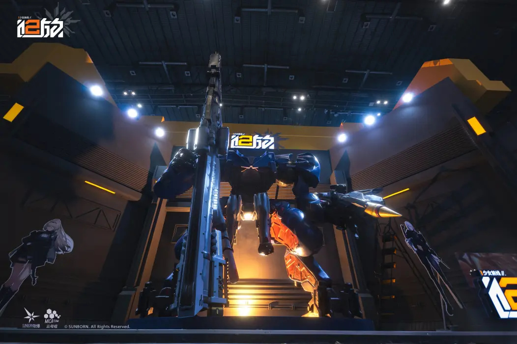 不僅在宣傳物料設計別出心裁,《少前2》的展廳佈置更是不惜重金。威風凜凜的威瑪西娜機甲鎮守一方,甚至物料區還有角色皮膚的實物旗袍展示,創意與誠意並存。