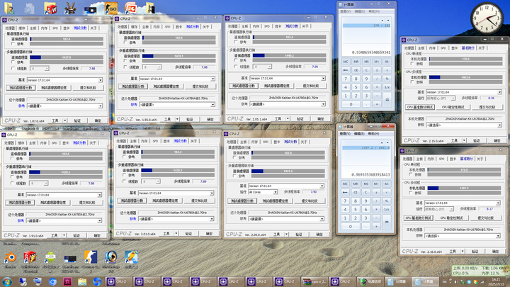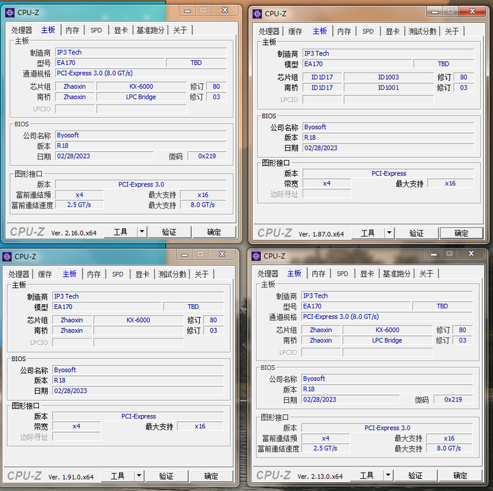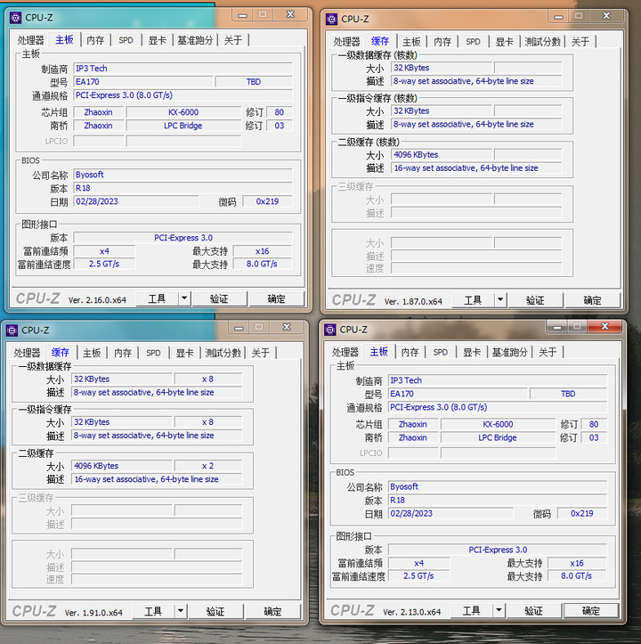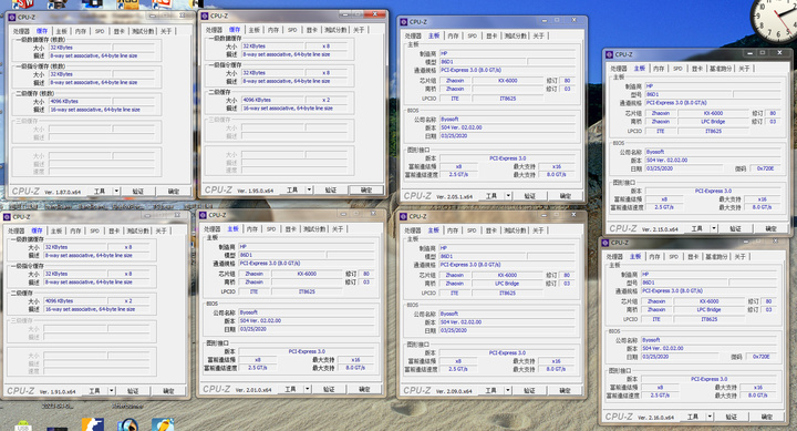 可以看到2.13以后的兆芯KX6000跑分普遍偏低了一些,到这垃圾佬就基本可以认定是CPUz的问题了,因为以上跑分均在CPU工况相同的情况下多次运行,结果可复现