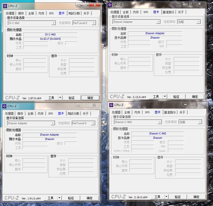 反倒是1.87版应该直接读取的驱动报告的GPU型号所以能显示出来ZX C-960但是明显的显卡品牌这个位置显示的VENDOR ID而并没有对应厂家