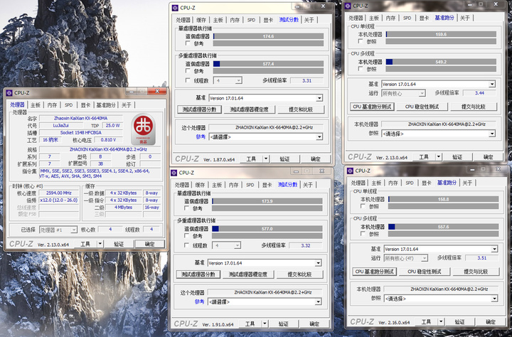 因此也简单跑了下兆芯U6580不同CPUz版本的分数对比