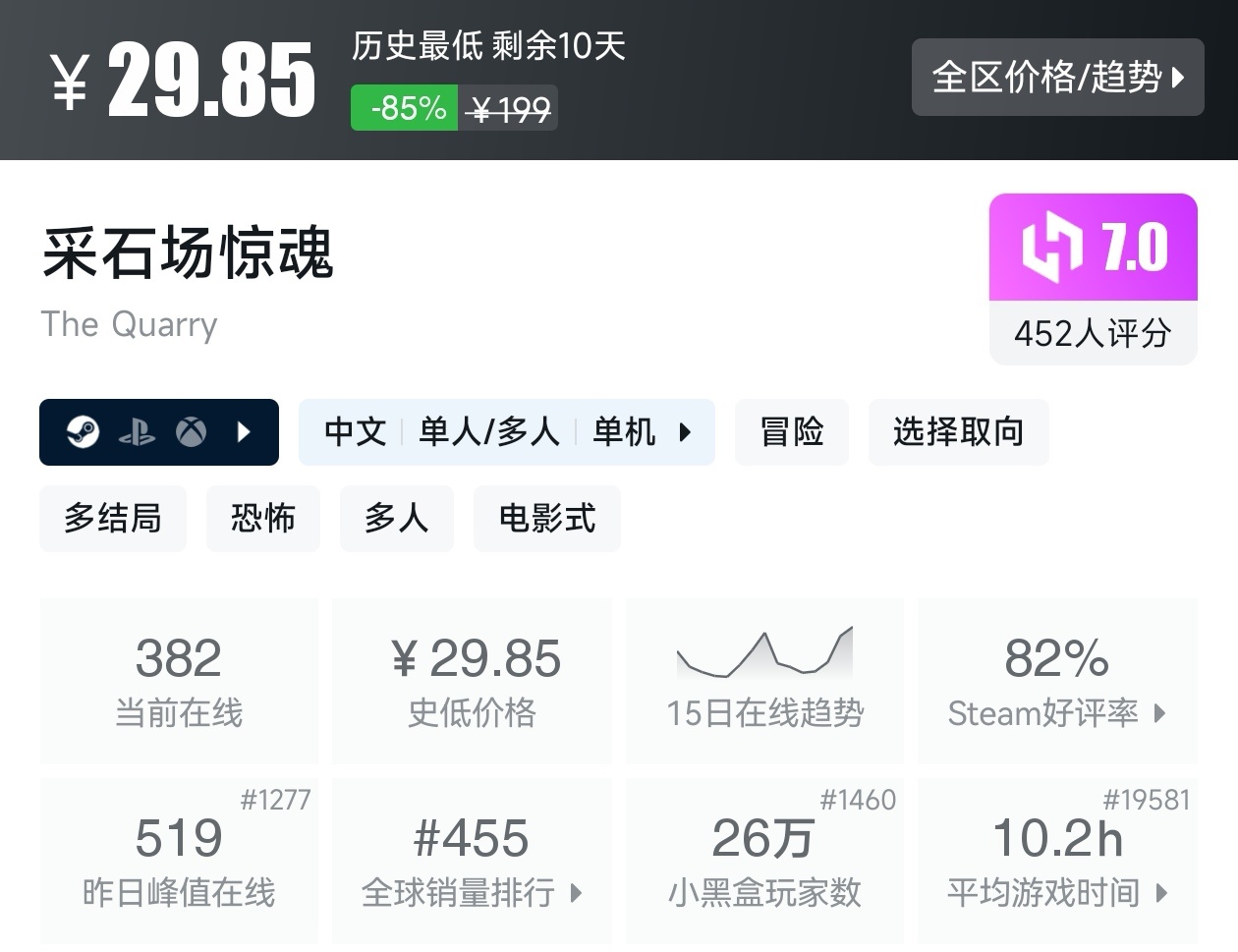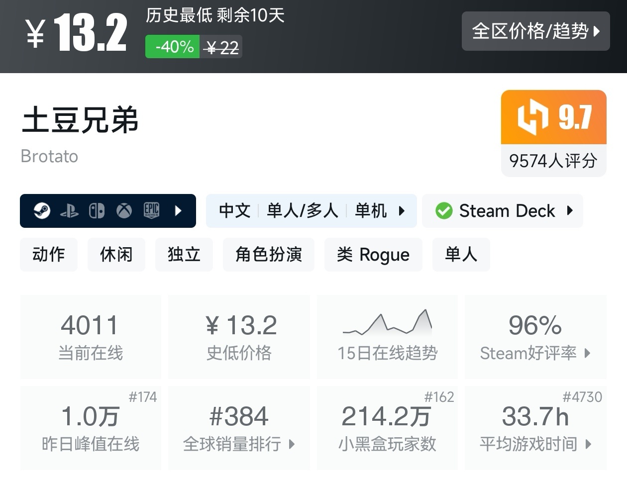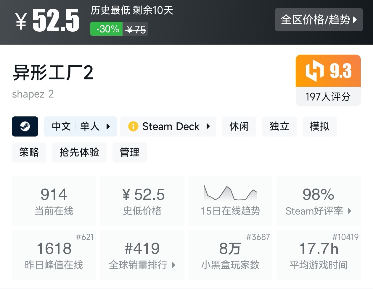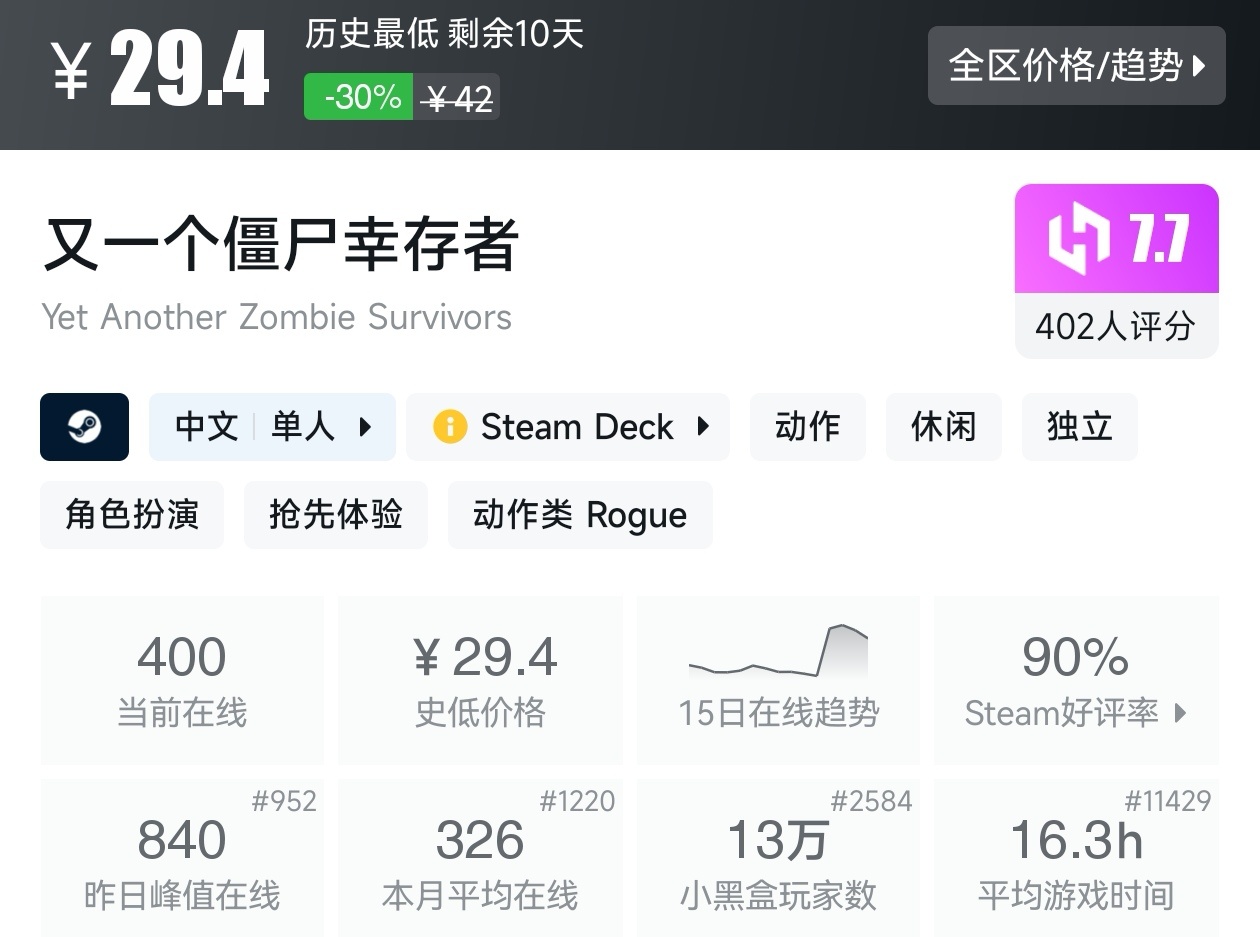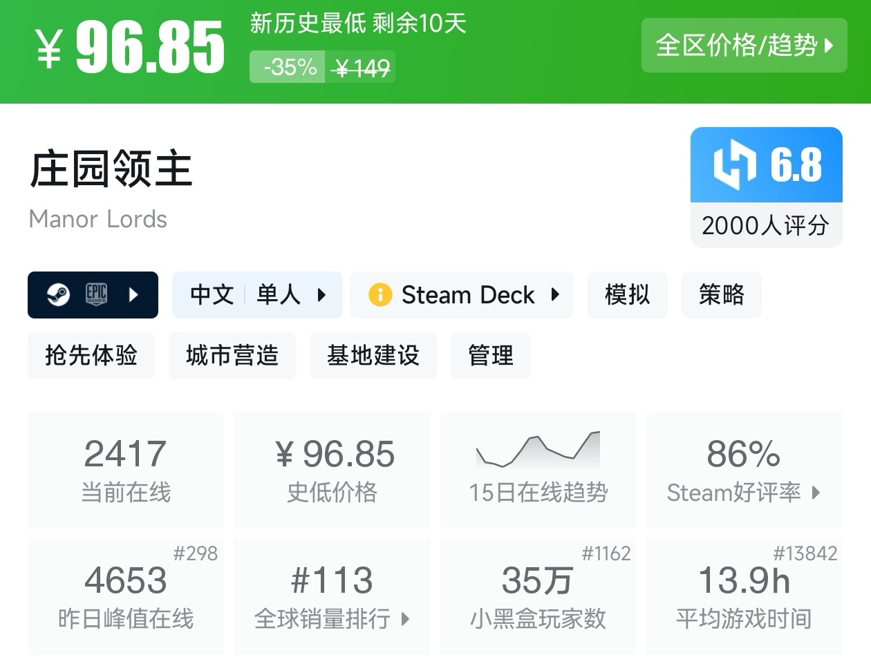 大家好,没错,又是我,你们的老朋友亦然,最近有很多游戏都正在史低,其中还有不少的史低游戏,当然,在史低游戏中还有很多高分好评游戏,甚至说人气大作,其实游戏在史低买就是最香,因为史低游戏不容易被背刺,我将为各位进行一个汇总,希望我的汇总,能够帮助各位盒友挑选心仪的游戏。